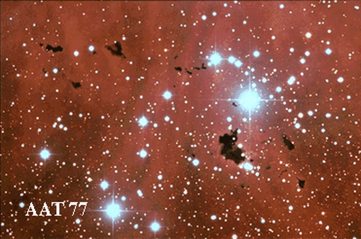Explanation: The odd looking "creature" to the right of center in the above photo is a gas cloud known as a cometary globule. This globule, however, has ruptured. Cometary globules are typically characterized by dusty heads and elongated tails. These features cause cometary globules to have visual similarities to comets, but in reality they are very much different. Cometary globules are frequently the birthplaces of stars, and many show very young stars in their heads. The reason for the rupture in the head of this object is not completely known. The galaxy to the left of center is very far in the distance and is only placed near CG4 by chance superposition.