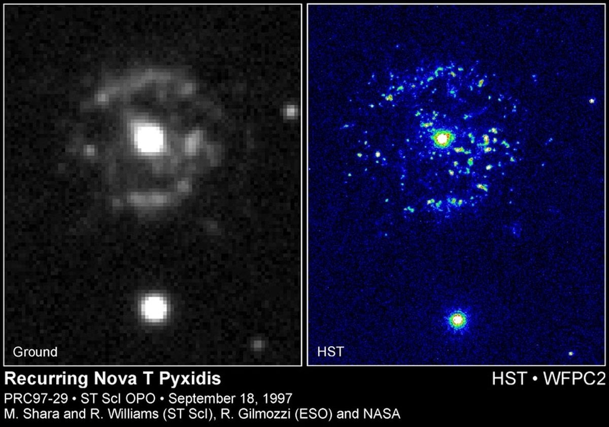 Many stargazers in the U. S. were able to watch a lovely lunar occultation early last Thursday morning as a bright Moon passed in front of Saturn. Using a 1.2 meter reflector, astronomer Kris Stanek had an excellent view of this dream-like event from the Whipple Observatory atop Arizona's Mount Hopkins. This animated gif image was constructed by Wes Colley from 4 frames taken by Stanek at 35 second intervals as the ringed planet emerged from behind the Moon's dark limb. While lunar occultations of fairly bright stars and planets are not extremely rare events, their exact timing depends critically on the observer's location.