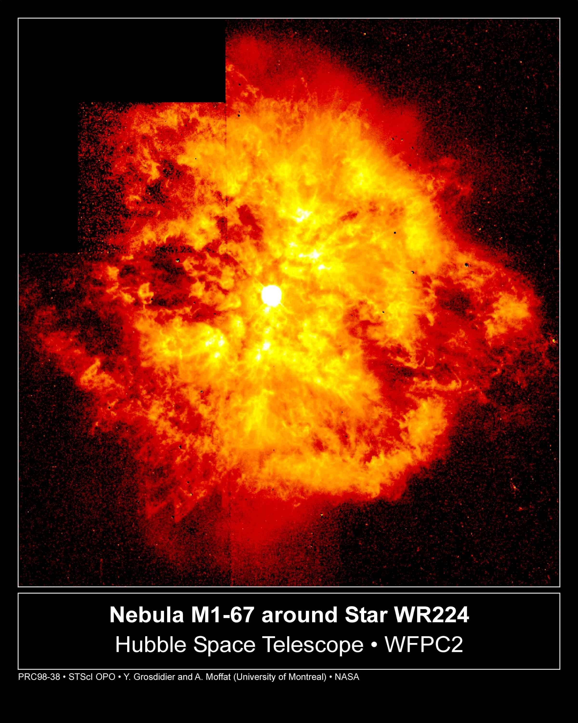 NGC 3132’nin merkezine yakın yerde bu tuhaf ama güzel gezegenimsi bulutsuyu oluşturan, parlak yıldız değil; sönük olan yıldız. “Sekiz Patlamalı Bulutsu” ve “Güney Halkası Bulutsusu” diye de anılan bu ışıyan gaz, bizim Güneş’imize benzer bir yıldızın dış katmanlarından kopup uzaya yayıldı. Bu temsili renkli görüntüde, ikili sistemin çevresini saran sıcak mavi ışık halesi, sönük yıldızın çok sıcak yüzeyi tarafından enerjiyle besleniyor. Görüntü, alışılmadık simetrileri incelemek için çekilmiş olsa da NGC 3132’yi bu kadar ilgi çekici yapan şey aslında asimetrileri. Çevresindeki daha soğuk kabuğun sıra dışı biçimi de, NGC 3132’nin üzerinden geçen soğuk, ipliksi toz şeritlerinin yapısı ve konumları da hâlâ iyi anlaşılmış değil.