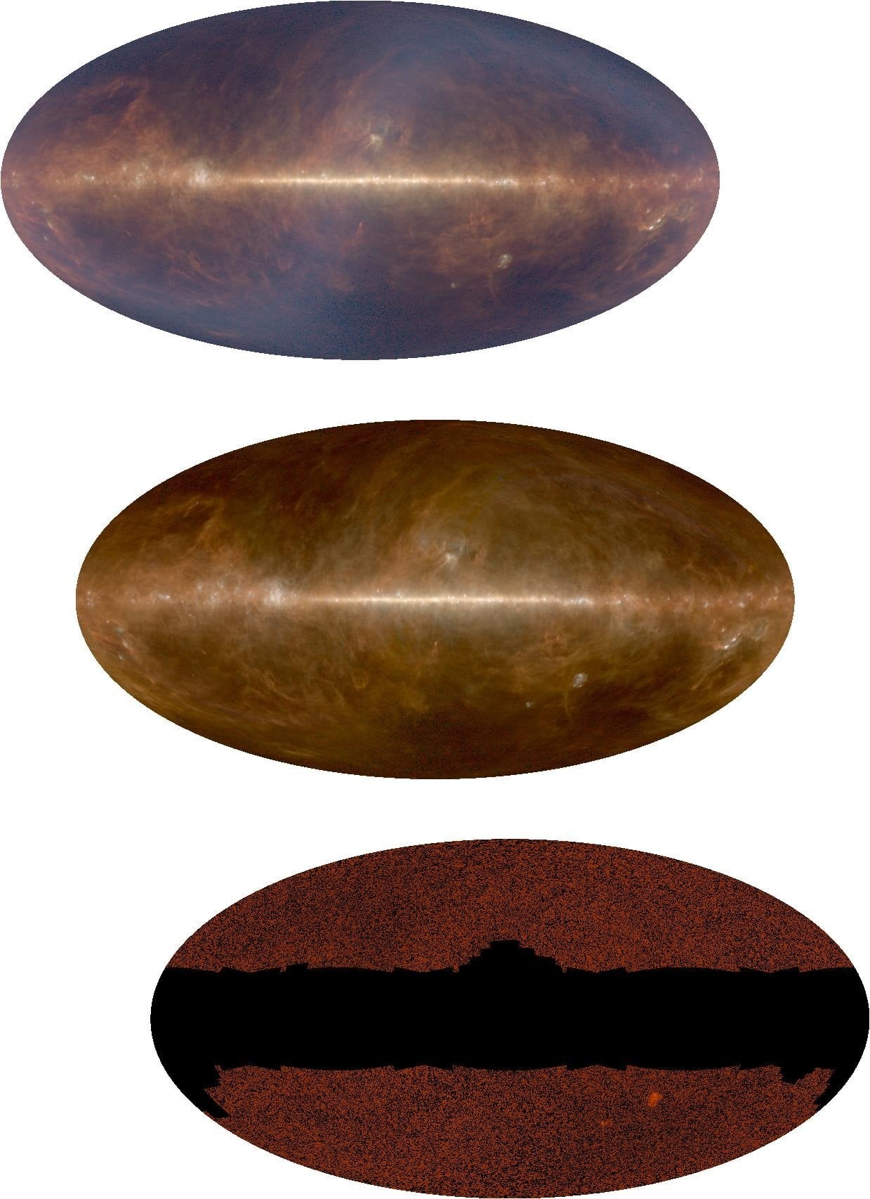 Was this picture taken from outside our Galaxy? No, it is a composite taken from Earth orbit, well inside our Milky Way Galaxy. In light just a little too red for human eyes to see - "near infrared" electromagnetic radiation - the disk and center of our Galaxy stand out giving an appearance likely similar to seeing our Galaxy from the outside in visible light. The above COBE image was recently reprocessed for higher resolution and shows red stars and dust in our Galaxy superposed against the faint glow of many dim stars in distant galaxies. Faintly visible as an S-shaped sash running through the image center is zodiacal light -- dust in our own Solar System. Compared to the far-infrared sky, little Galactic dust is visible. The two smudges on the lower right are the Large and Small Magellanic Clouds neighboring galaxies.