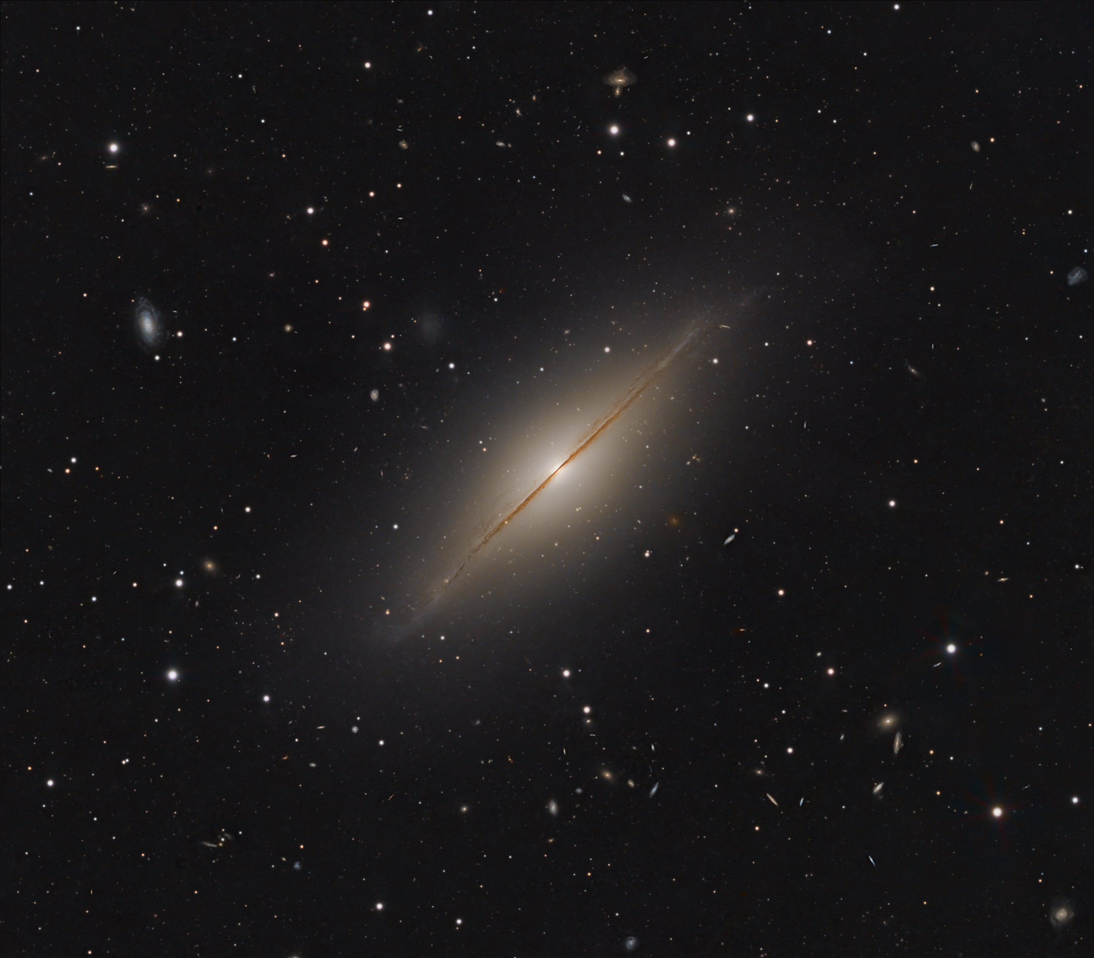 The Whirlpool Galaxy is a classic spiral galaxy. At only 30 million light years distant and fully 60 thousand light years across, M51, also known as NGC 5194, is one of the brightest and most picturesque galaxies on the sky. The above image is a digital combination of a ground-based image from the 0.9-meter telescope at Kitt Peak National Observatory and a space-based image from the Hubble Space Telescope highlighting sharp features normally too red to be seen. Anyone with a good pair of binoculars, however, can see this Whirlpool toward the constellation of Canes Venatici. M51 is a spiral galaxy of type Sc and is the dominant member of a whole group of galaxies. Astronomers speculate that M51's spiral structure is primarily due to its gravitational interaction with a smaller galaxy just off the top of this image.