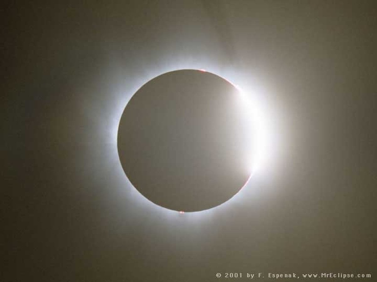 Yesterday, for a brief few minutes, a total eclipse of the Sun brought darkness to southern Africa's daytime skies. During this first total solar eclipse of the third millennium webcast sites were swamped, but sun-watchers along the eclipse path enjoyed clear weather and reported fantastic views. Enthusiastic astrophotographer Olivier Staiger recorded these pictures during the eclipse's total phase from Lusaka, Zambia. The large image above shows the Sun's tantalizing inner corona with telltale pinkish prominences around the solar limb, while the inset at the lower right reveals the spiky outer corona. But the inset also captures another celestial beacon sharing the eclipse-darkened heavens, the bright planet Jupiter shining at the lower left. The next total solar eclipse will be on 2002 December 4 ... again in southern African skies.