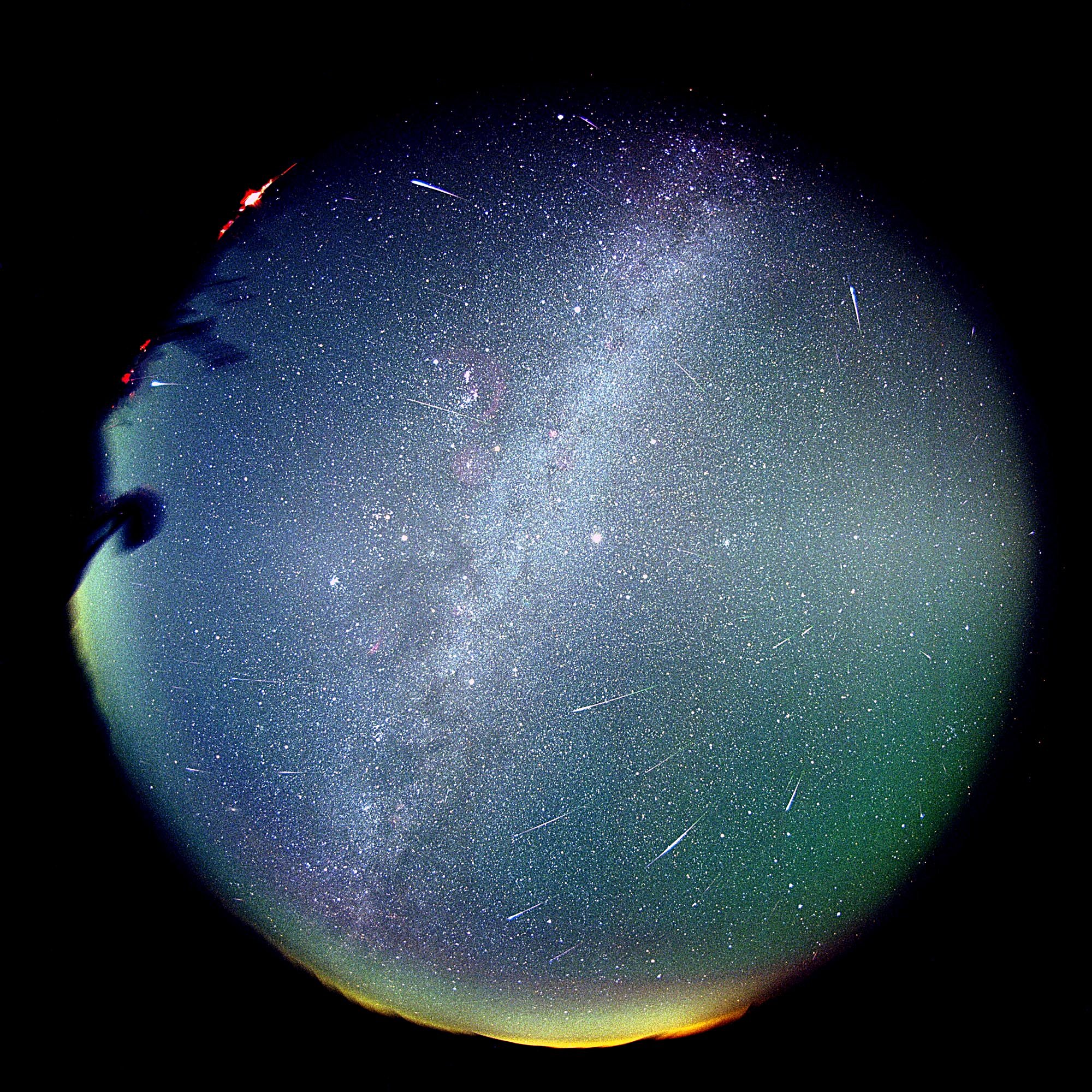 In the early morning hours of November 19, amateur Chen Huang-Ming caught a sky filled with astronomical wonders. With his fisheye camera set up on Ho-Huan Mountain in Taiwan for a half-hour exposure, he started the above image a local time of 2:33 am. First, the many famous stars and nebulas captured are too numerous to count. Planets Jupiter and Saturn are visible, while the plane of our Milky Way Galaxy sweeps diagonally across the image. What makes this image most spectacular, however, are the over 100 bright meteors visible from the 2001 Leonids Meteor Shower. The meteor shower is caused by the Earth plowing through a stream of sand-sized ice particles shed years ago by Comet Tempel-Tuttle. Note that the meteors can all be tracked back to a radiant in the constellation Leo, the direction from which the particles orbit the Sun.