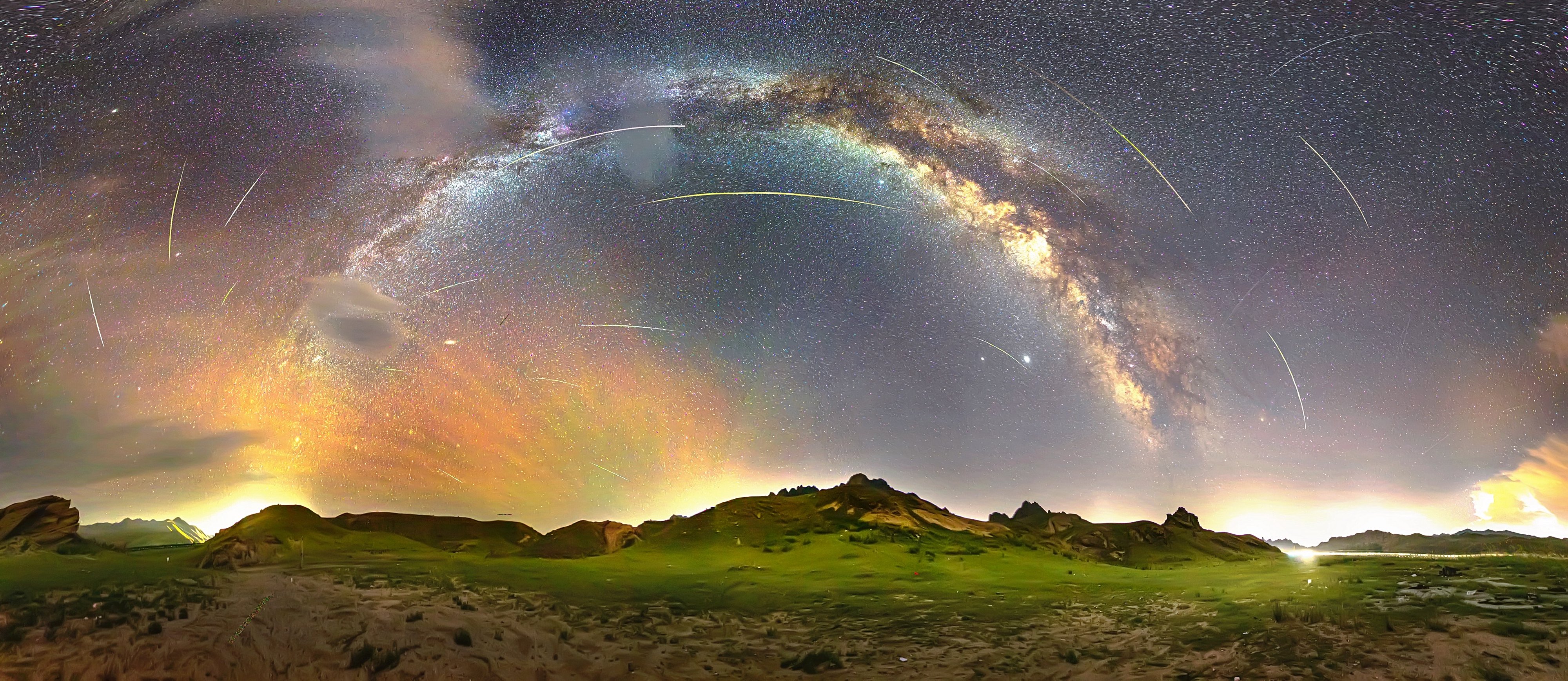 of Phoenix, Arizona, USA. The celestial scene was recorded in a five minute time exposure using high-speed color print film and a 35mm camera