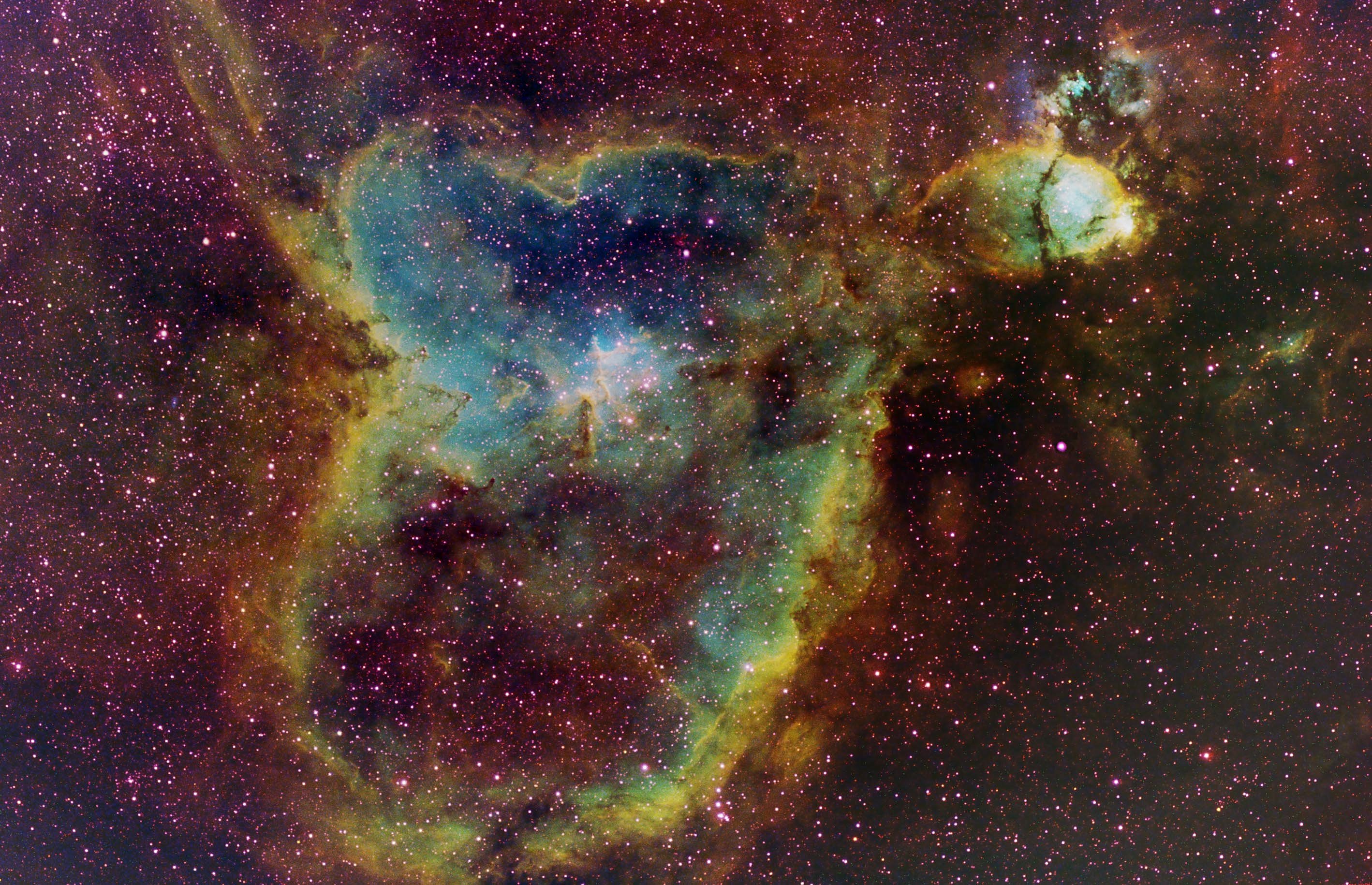 Microquasars, bizarre binary star systems generating high-energy radiation and blasting out jets of particles at nearly the speed of light, live in our Milky Way galaxy. The energetic microquasar systems seem to consist of a very compact object, either a neutron star or a black hole, formed in a supernova explosion but still co-orbiting with an otherwise normal star. Using a very long array of radio telescopes, astronomers are reporting that at least one microquasar, LSI +61 303, can be traced back to its probable birthplace -- within a cluster of young stars in the constellation Cassiopeia. About 7,500 light-years from Earth, the star cluster and surrounding nebulosity, IC 1805, are shown in the deep sky image above. The cluster stars are identified by yellow boxes and circles. A yellow arrow indicates the common apparent motion of the cluster stars, the green arrow shows the deduced sky motion of the microquasar system, and the red arrow depicts the microquasar's motion relative to the star cluster itself. Seen nearly 130 light-years from the cluster it once called home, a powerful kick from the original supernova explosion likely set this microquasar in motion.