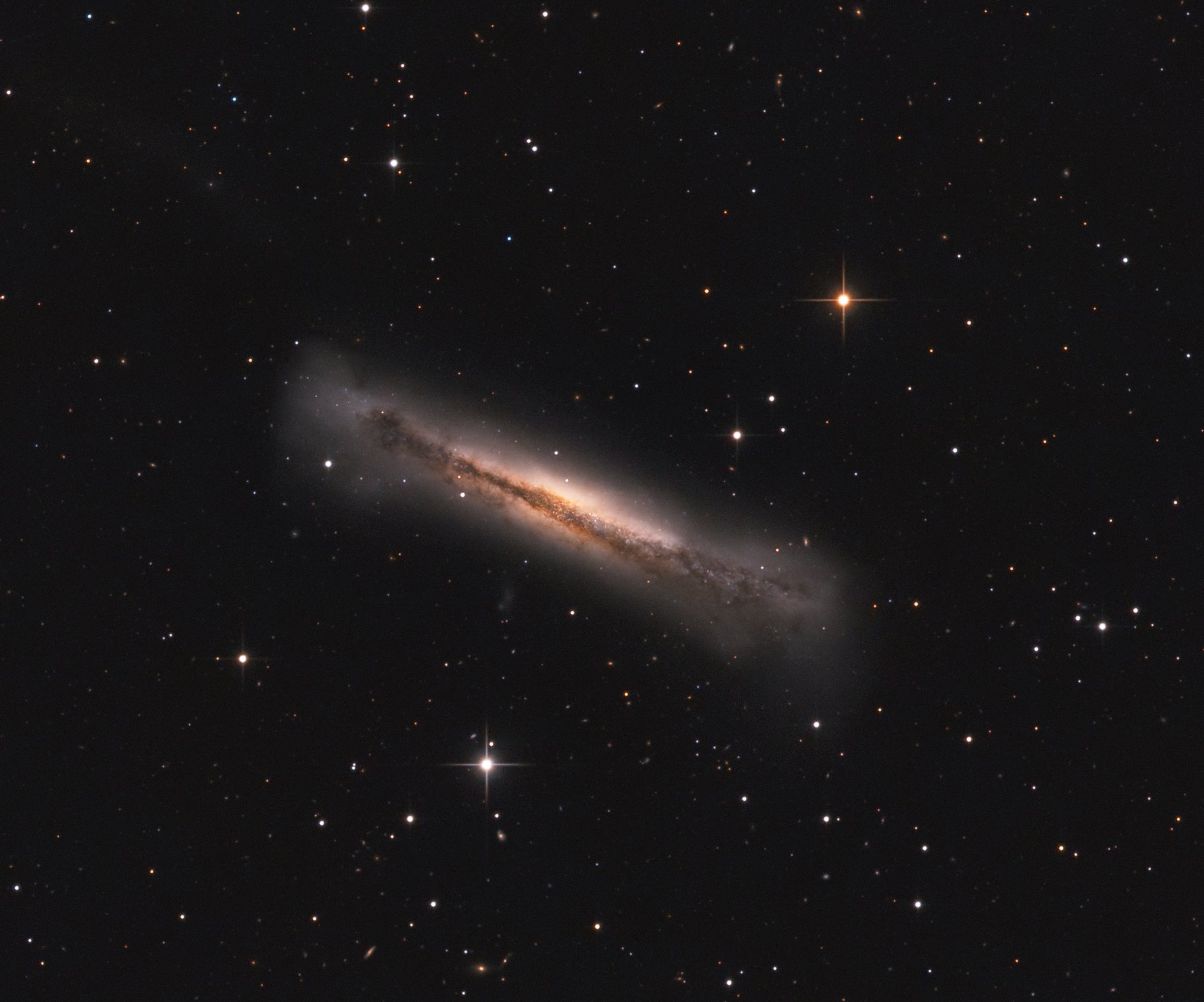 The center of our Galaxy is a busy place. In visible light, much of the Galactic Center is obscured by opaque dust. In infrared light, however, dust glows more and obscures less, allowing nearly one million stars to be recorded in the above photograph. The Galactic Center itself appears on the right and is located about 30,000 light years away towards the constellation of Sagittarius. The Galactic Plane of our Milky Way Galaxy, the plane in which the Sun orbits, is identifiable by the dark diagonal dust lane. The absorbing dust grains are created in the atmospheres of cool red-giant stars and grow in molecular clouds. The region directly surrounding the Galactic Center glows brightly in radio and high-energy radiation, and is thought to house a large black hole.