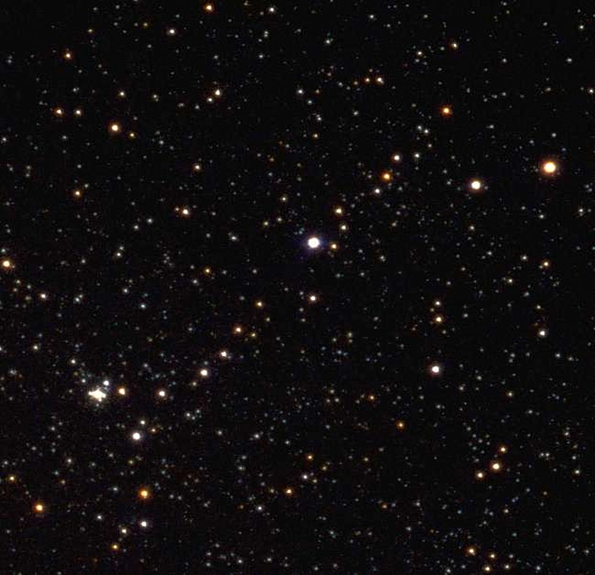 A picturesque chain of unrelated stars is visible with strong binoculars towards the constellation of Camelopardalis. Known as Kemble's Cascade, the asterism contains about 20 stars nearly in a row stretching over five times the width of a full moon. Made popular by astronomy enthusiast Lucian Kemble (1922-1999), these stars appear as a string only from our direction in the Milky Way Galaxy. The above photograph of Kemble's Cascade was made with a small telescope in New Mexico, USA. The bright object near the bottom left is the relatively compact open cluster of stars known as NGC 1502.