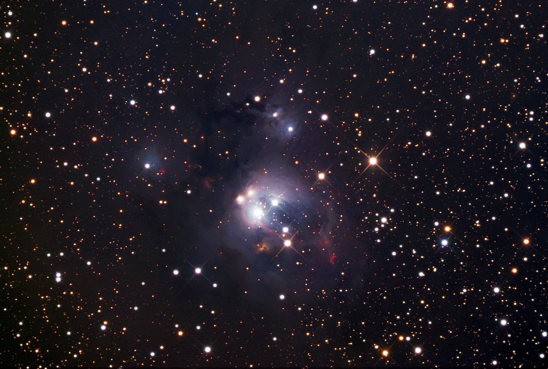 Young suns still lie within dusty NGC 7129, some 3,000 light-years away toward the royal constellation Cepheus. While these stars are at a relatively tender age, only about a million years old, it is likely that our own Sun formed in a similar stellar nursery some five billion years ago. Most noticeable in the striking image are the lovely bluish dust clouds that reflect the youthful starlight, but the smaller, deep red crescent shapes are also markers of energetic, young stellar objects. Known as Herbig-Haro objects, their shape and color is characteristic of glowing hydrogen gas shocked by jets streaming away from newborn stars. Ultimately the natal gas and dust in the region will be dispersed, the stars drifting apart as the loose cluster orbits the center of the Galaxy. NGC 7129 is about 10 light-years across.