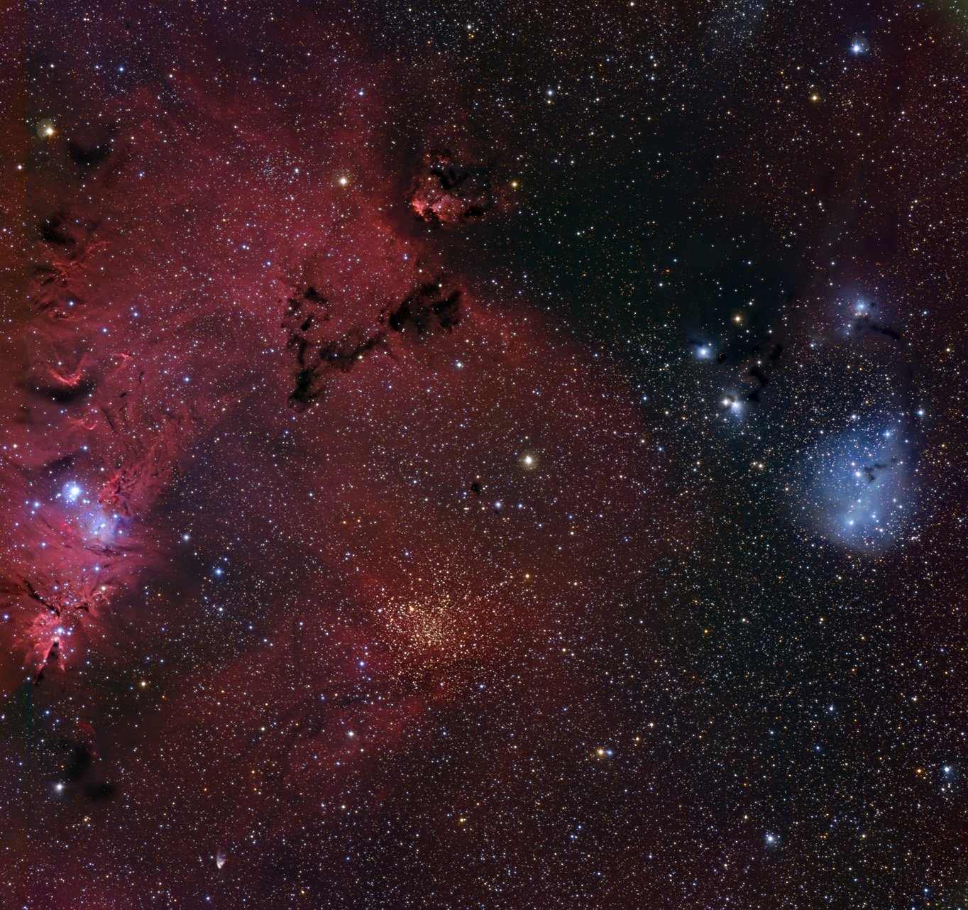 For the mostly harmless denizens of planet Earth, the brighter stars of open cluster NGC 2169 seem to form a cosmic 37. (Did you expect 42?.) Of course, the improbable numerical asterism appears solely by chance and lies at an estimated distance of 3,600 light-years toward the constellation Orion. As far as galactic or open star clusters go, NGC 2169 is a small one, spanning about 7 light-years. Formed at the same time from the same cloud of dust and gas, the stars of NGC 2169 are only about 8 million years old. Such clusters are expected to disperse over time as they encounter other stars, interstellar clouds, and experience gravitational tides while traveling through the galaxy. Over four billion years ago, our own Sun was likely formed in a similar open cluster of stars.
