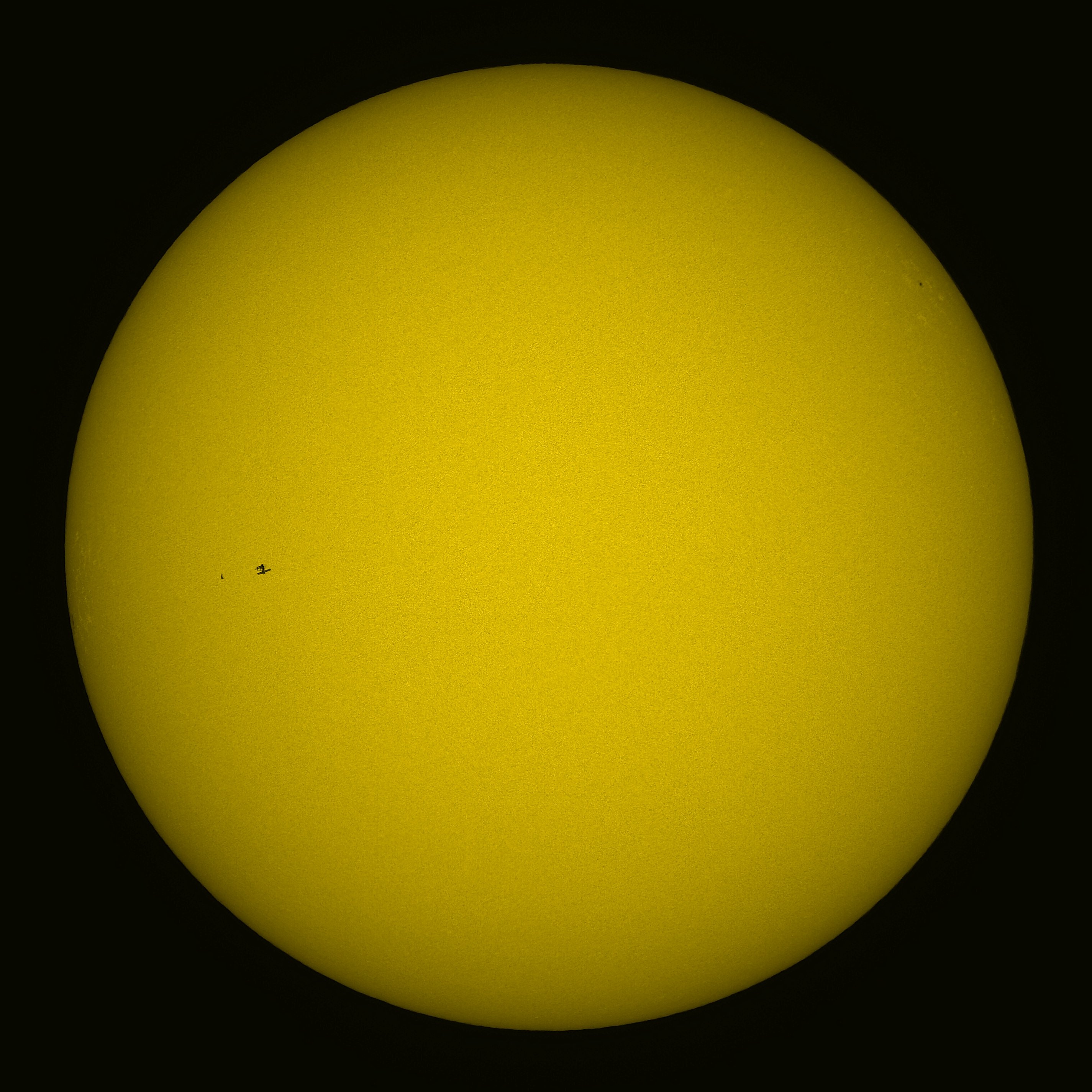 Though it's 93 million miles away, the Sun still hurts your eyes when you look at it. But bright sunlight (along with accurate planning and proper equipment!) resulted in this sharp silhouette of spaceship and space station. The amazing telescopic view, recorded on September 17, captures shuttle orbiter Atlantis and the International Space Station in orbit over planet Earth. At a range of 550 kilometers from the observing site near Mamers, Normandy, France, Atlantis (left) has just undocked and moved about 200 meters away from the space station. Tomorrow, yet another satellite of planet Earth can be seen in silhouette - the Moon will eclipse the Sun. This last eclipse of 2006 will be seen as an annular solar eclipse along a track that crosses northern South America and the south Atlantic.