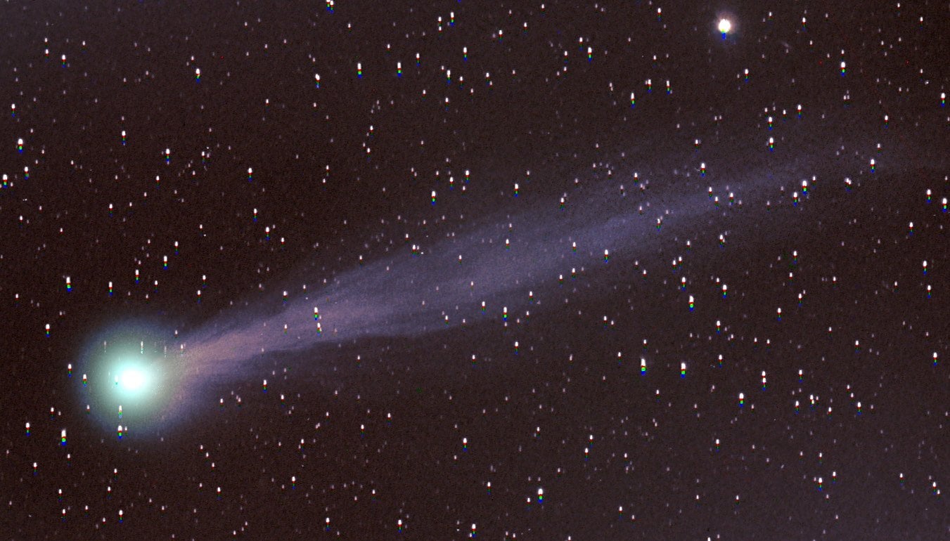 Near its closest approach to planet Earth, comet SWAN (C/2006 M4) brightened unexpectedly earlier this week, becoming visible to naked-eye observers under dark night skies. Telescopic observers also noticed dramatic changes in the comet's colorful coma and tail, seen in this view recorded on October 25th. To make the picture, images totaling eight minutes in exposure time were stacked and centered on the comet as it moved relatively quickly against the background star field. The picture covers about 1 degree on the sky. Northern hemisphere observers should still find the comet an easy binocular target in the early evening, even though moonlight will increase the overall sky brightness in the next few days. Look toward the northwestern horizon and the constellation Hercules.