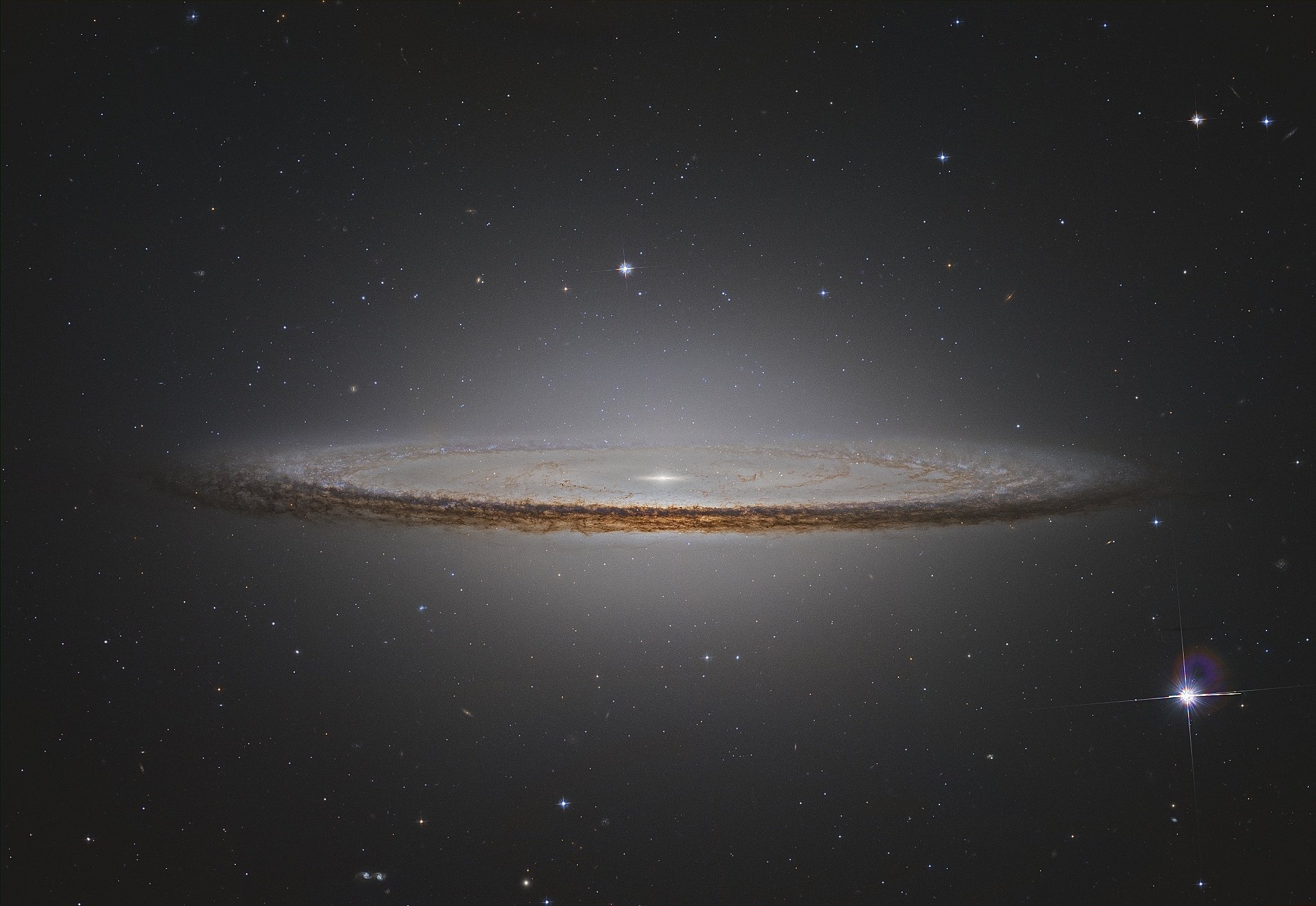 The striking spiral galaxy M104 is famous for its nearly edge-on profile featuring a broad ring of obscuring dust. Seen in silhouette against a bright bulge of stars, the swath of cosmic dust lanes lends a hat-like appearance to the galaxy in optical images suggesting the more popular moniker, The Sombrero Galaxy. Here, Hubble Space Telescope archival image data has been reprocessed to create this alternative look at the well-known galaxy. The newly developed processing improves the visibility of details otherwise lost in overwhelming glare, in this case allowing features of the galaxy's dust lanes to be followed well into the bright central region. About 50,000 light-years across and 28 million light-years away, M104 is one of the largest galaxies at the southern edge of the Virgo Galaxy Cluster.