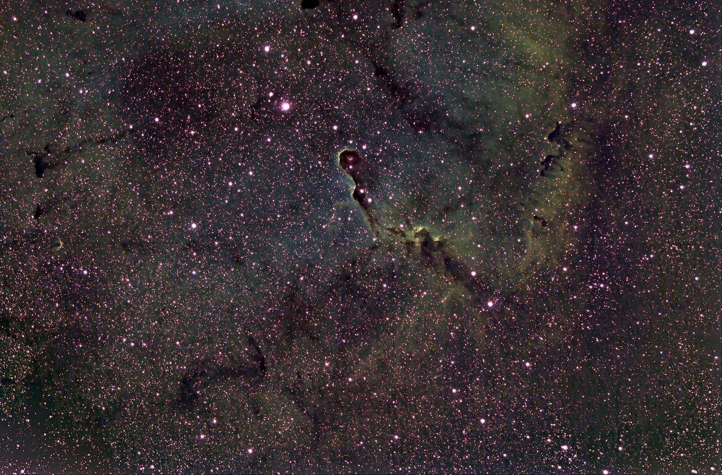 Clouds of glowing hydrogen gas fill this colorful skyscape in the faint but fanciful constellation Monoceros, the Unicorn. A star forming region cataloged as NGC 2264, the complex jumble of cosmic gas and dust is about 2,700 light-years distant and mixes reddish emission nebulae excited by energetic light from newborn stars with dark interstellar dust clouds. Where the otherwise obscuring dust clouds lie close to the hot, young stars they also reflect starlight, forming blue reflection nebulae. The wide mosaic spans about 3/4 degree or nearly 1.5 full moons, covering 40 light-years at the distance of NGC 2264. Its cast of cosmic characters includes the the Fox Fur Nebula, whose convoluted pelt lies at the upper left, bright variable star S Mon immersed in the blue-tinted haze just below the Fox Fur, and the Cone Nebula at the far right. Of course, the stars of NGC 2264 are also known as the Christmas Tree star cluster. The triangular tree shape traced by the stars appears sideways here, with its apex at the Cone Nebula and its broader base centered near S Mon.