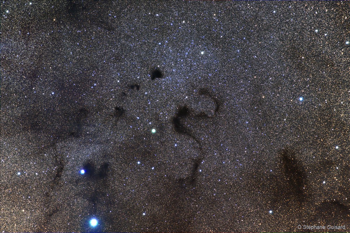 star Deneb, the Northern Cross asterism is embedded along the plane of the Milky Way as it peeks above the horizon. Both Northern Cross and brilliant white