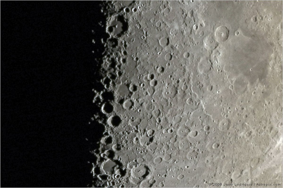 The striking X near the center of this lunarscape is easily visible in binoculars or a small telescope. Yet, not too many have seen it. The catch is, this lunar X is only apparent during a four hour period just before the Moon's first quarter phase. At the terminator, or shadow line between lunar day and night, the X illusion is produced by a configuration of the craters Blanchinus, La Caille and Purbach. Near the Moon's first quarter phase, an astronaut standing close to the craters' position would see the slowly rising Sun very near the horizon. Temporarily, the crater walls would be in sunlight while the crater floors were still in darkness. Seen from planet Earth, contrasting sections of bright walls against the dark floors by chance look remarkably like an X. This sharp image of the Lunar X was captured at approximately 11:59 UT on March 3, 2009. The Moon's first quarter phase was at 7:46 UT on March 4.