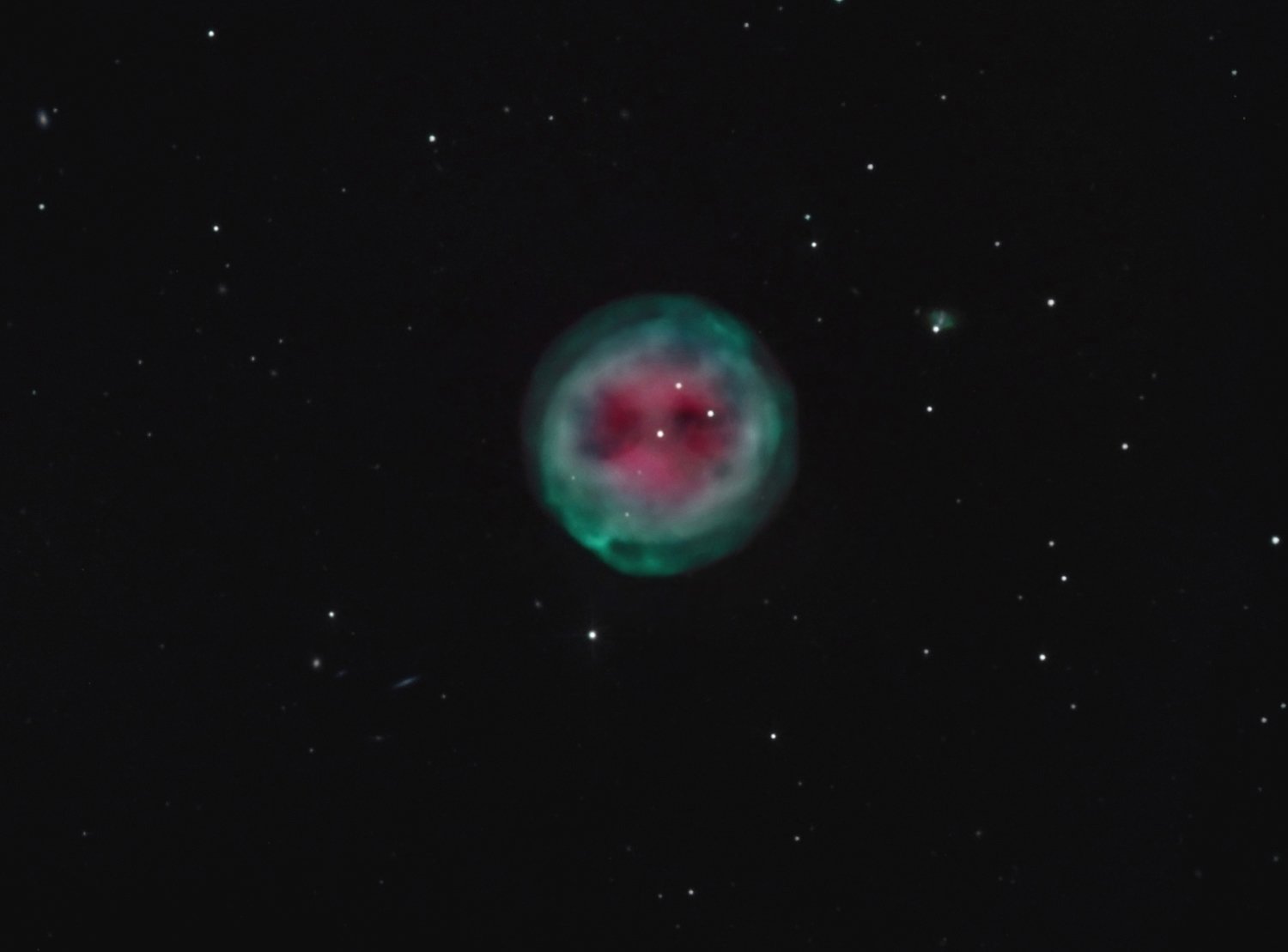 Normally faint and elusive, the Jellyfish Nebula is caught in this alluring wide-field telescopic view. Flanked by two yellow-tinted stars, Mu and Eta Geminorum, at the foot of a celestial twin, the Jellyfish Nebula is the brighter arcing ridge of emission with dangling tentacles right of center. In fact, the cosmic jellyfish is seen to be part of bubble-shaped supernova remnant IC 443, the expanding debris cloud from a massive star that exploded. Light from the explosion first reached planet Earth over 30,000 years ago. Like its cousin in astrophysical waters the Crab Nebula supernova remnant, IC 443 is known to harbor a neutron star, the remnant of the collapsed stellar core. Emission nebula Sharpless 249 fills the field at the upper left. The Jellyfish Nebula is about 5,000 light-years away. At that distance, this image would be almost 200 light-years across.