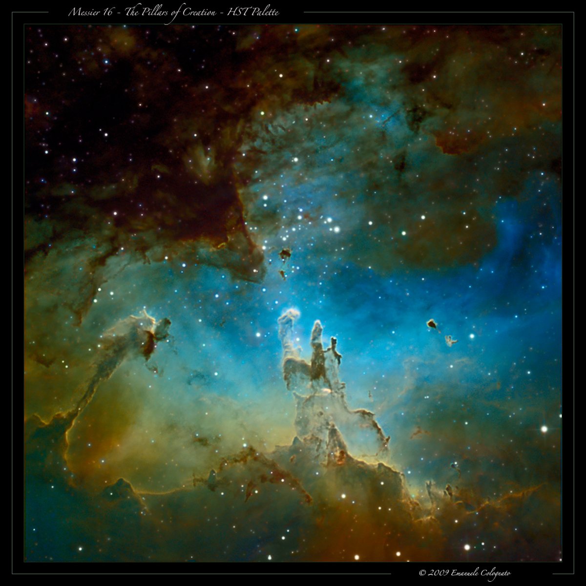 Bu kaleyi yıldız oluşumu açısından böylesine parlak yapan ne? Bildik Kartal Bulutsusu, aynı anda birçok renkte ışıldıyor. Yukarıdaki görüntü, bu parlayan gaz renklerinden üçünün birleştirilmesiyle oluşturulmuş bileşik bir çalışma. Koyu tozdan oluşan sütunlar, kule gibi yükselen ve yıldız oluşumunun daha yoğun bölgelerini güzelce belirginleştiriyor. Genç ve büyük kütleli yıldızlardan gelen enerjik ışık, gazı parlatıyor; aynı zamanda doğduğu sütundan toz ve gazın bir kısmını adeta kaynatıp uzaklaştırıyor. Bu yıldızların birçoğu birkaç milyon yıl sonra patlayacak ve içerdikleri elementlerin büyük bölümünü, kendilerini oluşturan bulutsuya geri verecek. Bu süreç, M16 olarak bilinen açık yıldız kümesini oluşturuyor.