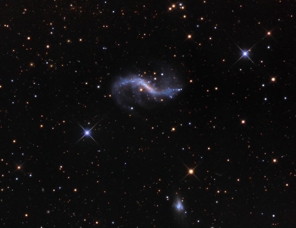 At opposition in late January, Mars shone very brightly in planet Earth's night sky, among the stars of the constellation Cancer the Crab. Since then the Red Planet has been fading, but still lingers in Cancer during April and May. In mid-April, Mars wandered remarkably close to Cancer's famous star cluster M44, the Beehive Cluster. M44 is also known by an older name, Praesepe, Latin for cradle or manger. Captured in this 60 second time exposure made on April 14, a yellow-tinged Mars and M44 are near the center of the field, seemingly just beyond the reach of a pine tree. Of course, M44's stars are about 600 light-years away, while Mars was more like 600 light-seconds from Earth. The digital photograph was made with a camera mounted on a telescope tracking the stars through dark skies above a camp ground in Virginia, USA. During the exposure, passing car lights briefly illuminated the tree branches.