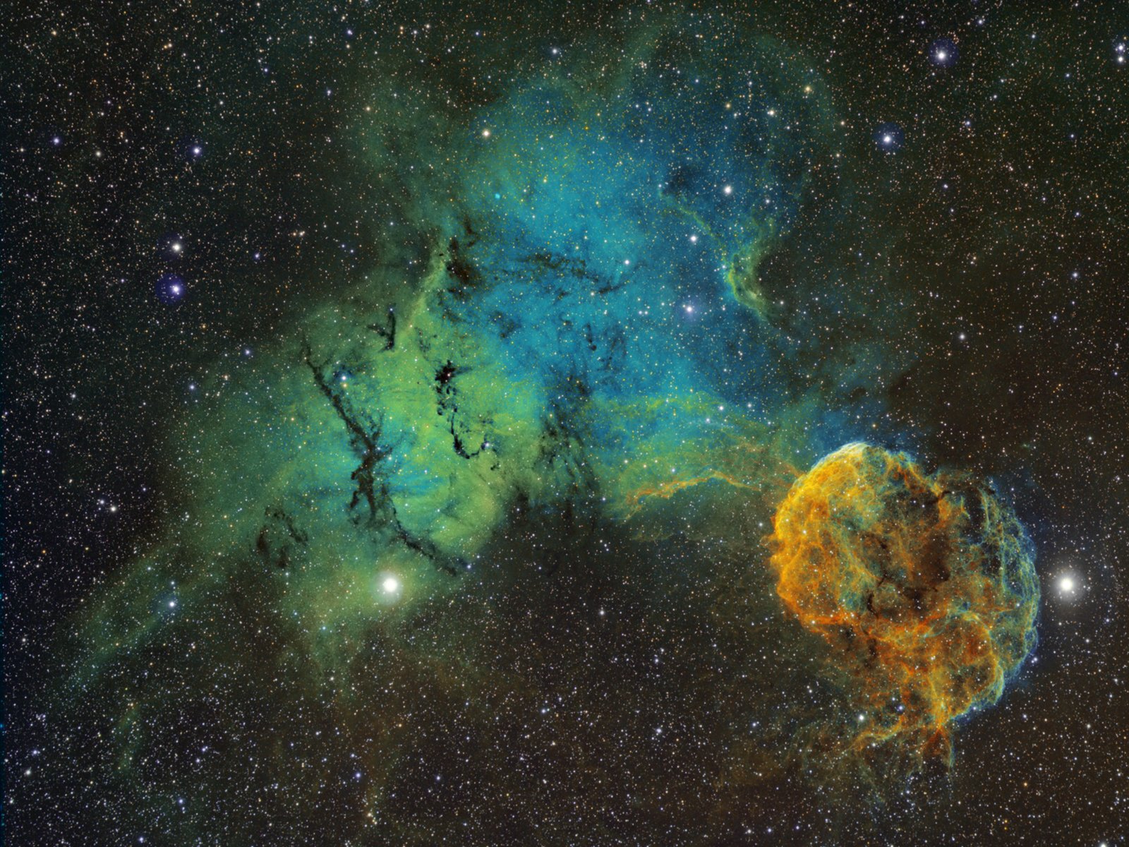 There's something behind these clouds. Those faint graceful arcs, upon inspection, are actually far, far in the distance. They are the Earth's Moon and the planet Venus. Both the Moon and Venus are bright enough to be seen during the day, and both are quite capable of showing a crescent phase. To see Venus, which appears quite small, in a crescent phase requires binoculars or a telescope. In the above dramatic daytime image taken from Budapest, Hungary in 2004, the Moon and Venus shared a similar crescent phase a few minutes before the Moon eclipsed the larger but more distant world. Similarly, visible today in parts of Africa and Asia, a crescent Moon will again eclipse Venus during the day. About an hour after the above image was taken, Venus reappeared.