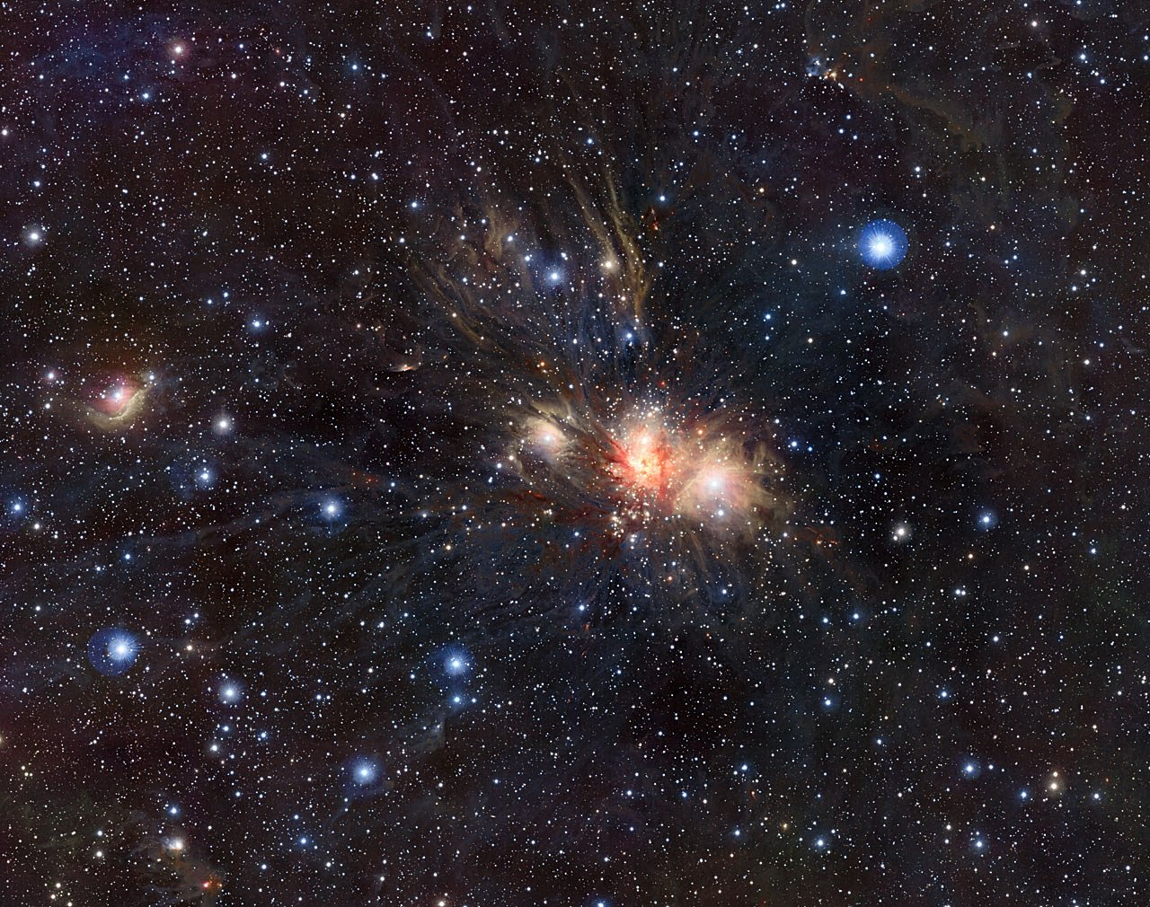 An alluring Comet Hartley 2 cruised through planet Earth's night sky on October 8, passing within about a Full Moon's width of the famous double star cluster in Perseus. The much anticipated celestial photo-op was recorded here in a 3 frame mosaic with greenish comet and the clusters h and Chi Persei placed at the left. The well-chosen, wide field of view spans about 7 degrees. It extends across the constellation boundary into Cassiopeia, all the way to the Heart Nebula (IC 1805) at the far right. To capture the cosmic moment, a relatively short 5 minute exposure was used to freeze the moving comet in place, but a longer exposure with a narrow-band filter was included in the central and right hand frames. The narrow-band exposure brings out the fainter reddish glow of the nebula's atomic hydrogen gas, in contrast to the cometary coma's kryptonite green. In the past few days, comet watchers have reported that Hartley 2 has become just visible to the unaided eye for experienced observers from dark, clear sites. On October 20, the comet will make its closest approach to Earth, passing within about 17 million kilometers. On November 4, a NASA spacecraft will fly by the comet's small nucleus estimated to be only 1.5 kilometers in diameter.