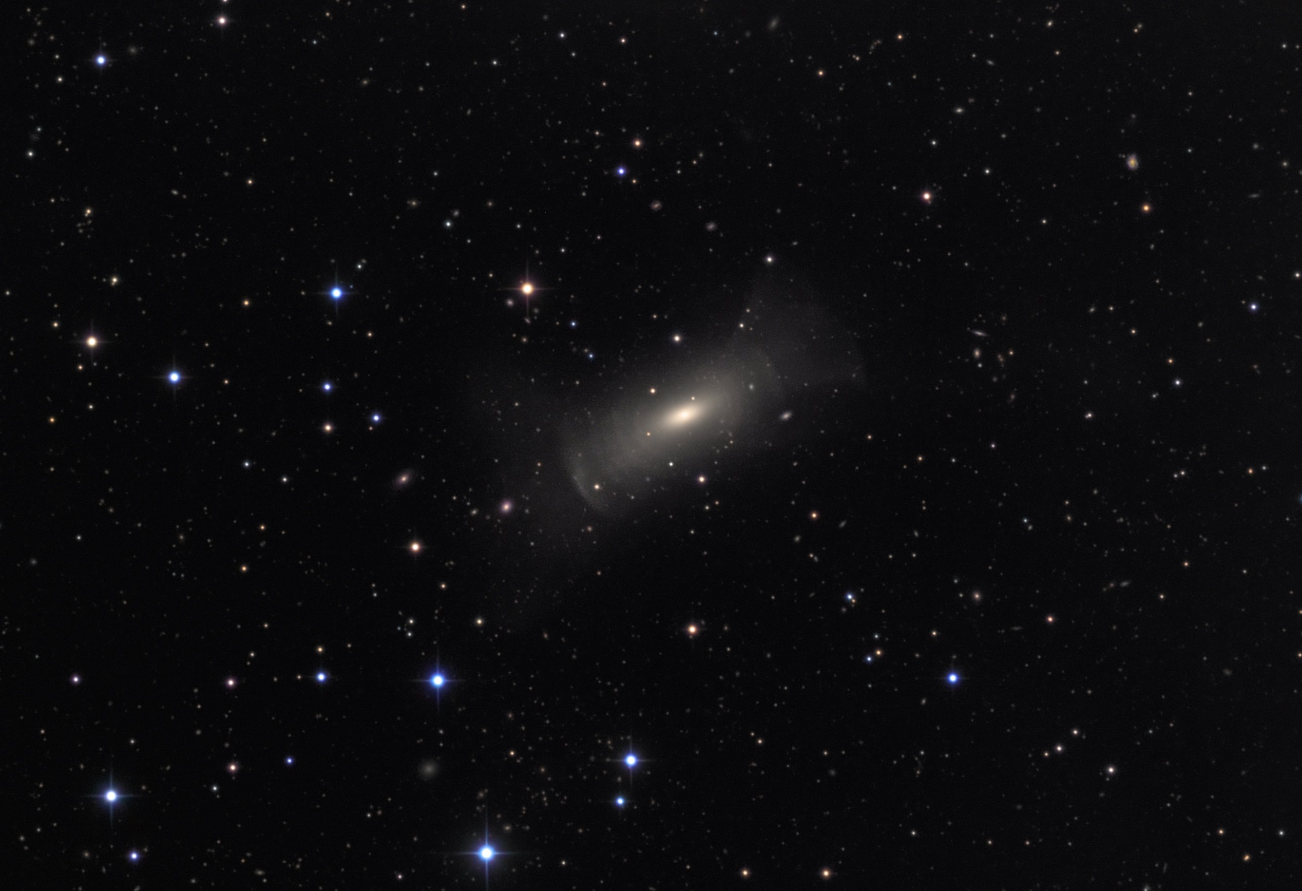 Similar in size to the Milky Way, elliptical galaxy NGC 7600 is about 160 million light-years distant. In this deep image, spanning about 1/2 degree on the sky toward the constellation Aquarius, NGC 7600 sports a remarkable outer halo of nested shells and broad circumgalactic structures. The tantalizing features can be explained by the accretion of dark matter and stars on a cosmic timescale. In fact, a movie generated by simulating galaxy formation using a cosmological model with cold dark matter for the halos of merging galaxies reproduces the appearance of NGC 7600 in amazing detail. The remarkable simulation movie is available here on Vimeo and here in other formats. It presents compelling evidence that detailed features of galaxy mergers observed with small, wide field telescopes on planet Earth, are natural consequences of galaxy formation and fundamental properties of dark matter.