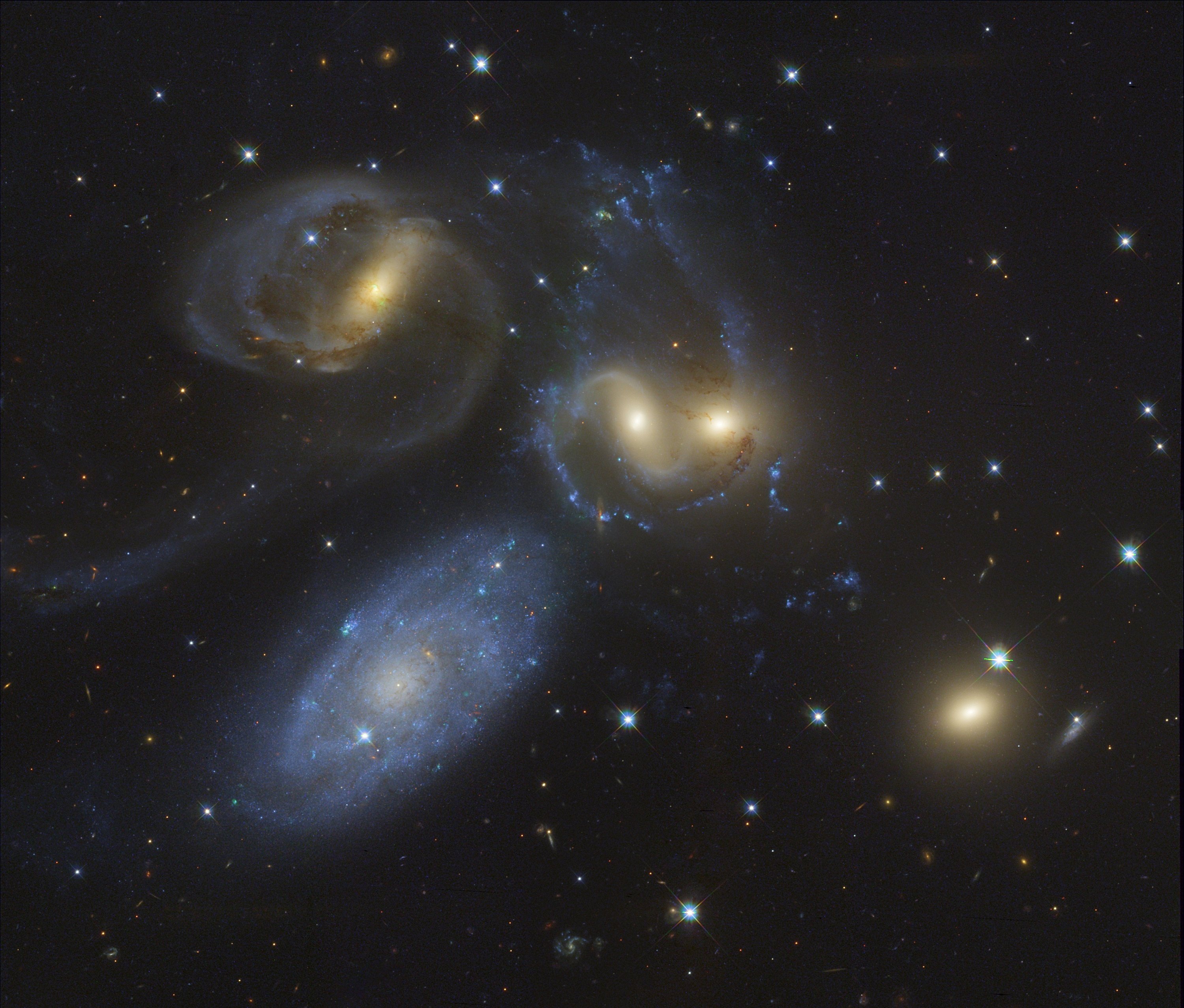 Hubble Legacy Archive. About 300 million light-years away, only four of these five galaxies are actually