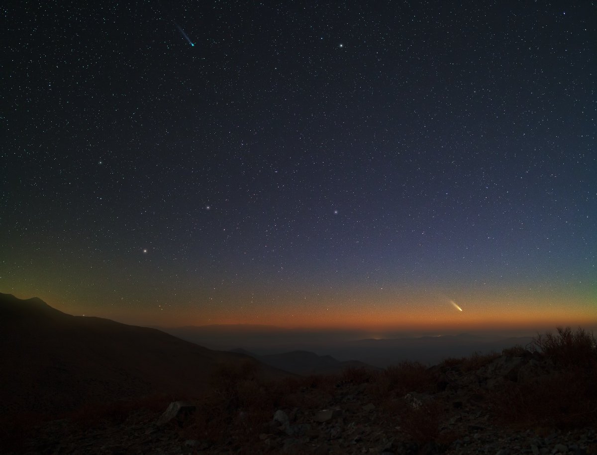Two impressive comets will both reach their peak brightness during the next two weeks. Taking advantage of a rare imaging opportunity, both of these comets were captured in the sky together last week over the