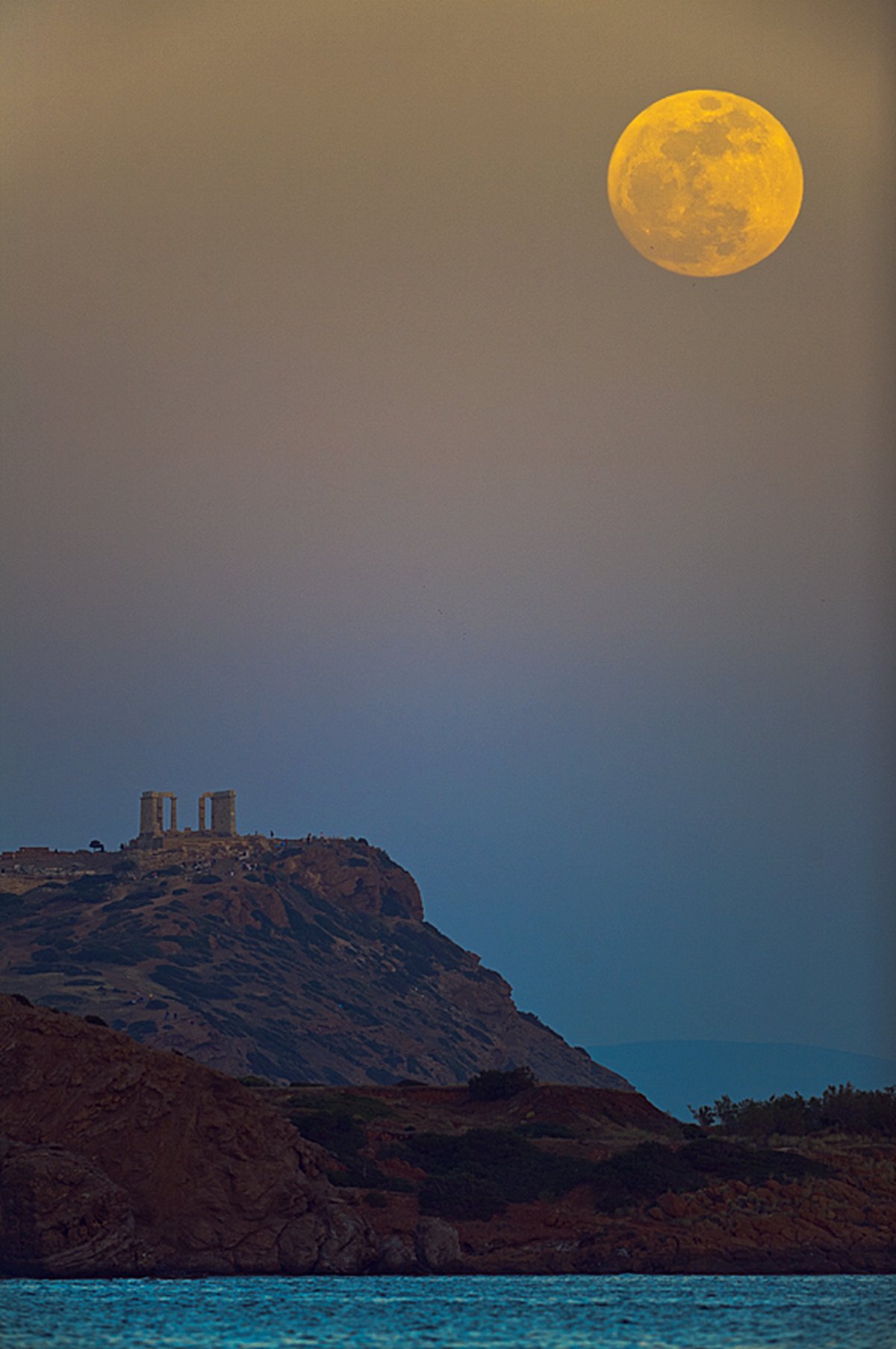 A big, bright, beautiful Full Moon will rise at sunset on Sunday. Its exact full phase (June 23, 11:32 UT) will occur shortly before it reaches perigee, the closest point to Earth in the Moon's orbit, and make it the largest Full Moon of 2013. But such circumstances are not very rare. The full lunar phase falls near the Moon's orbit perigee about every 14 lunar months. That means the following Full Perigee Moon will be on August 10, 2014, the 14th Full Moon after June 23. On May 5, 2012, 14 Full Moons ago, this inspired telescopic night skyscape captured the Full Perigee Moon rising over Cape Sounion, Greece and the ancient Temple of Poseidon.