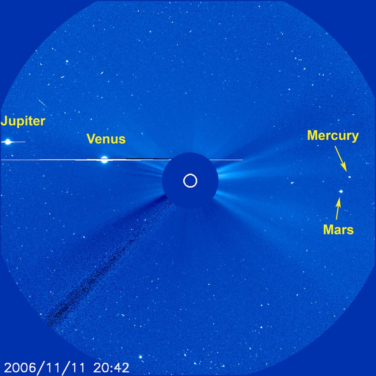 Güneş için sakin bir gün. Ancak yukarıdaki görüntü, sessiz günlerde bile Güneş’in yüzeyinin oldukça hareketli bir yer olduğunu gösteriyor. Morötesi ışıkta görülen nispeten soğuk ve karanlık bölgeler, binlerce santigrat derece sıcaklığa sahiptir. Son Güneş çevriminden kalma, AR 9169 adlı büyük Güneş lekesi grubu, ufka yakın parlak bir bölge olarak görülüyor. Güneş lekelerinin çevresinde akan parlak gaz, bir milyon santigrat derecenin üzerinde bir sıcaklığa sahiptir. Bu yüksek sıcaklıkların nedeni tam olarak bilinmemekle birlikte, Güneş plazmasını yönlendiren ve hızla değişen manyetik alan döngüleriyle ilişkili olduğu düşünülmektedir. AR 9169 adlı büyük Güneş lekesi grubu, 2000 yılının Eylül ayında Güneş’in yüzeyi boyunca hareket etmiş ve birkaç hafta içinde yok olmuştur.