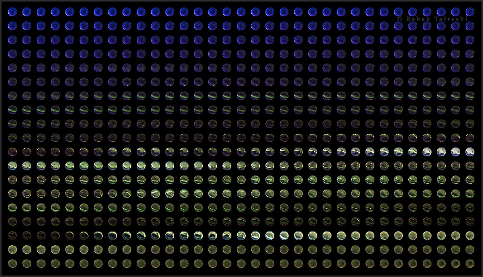 It looks like a fine collection of aggies. But this grid of embedded swirls and streaks actually follows the dramatic development of planet Earth's auroral substorms. The sequence of over 600 horizon-to-horizon fisheye images was taken over a 2 hour period near the artic circle in March of 2012 from Lapland, northern Sweden. It begins at upper left in evening twilight and ends at lower right, covering two activity peaks with bright coronae forming overhead. While exploring space between Earth and Moon, NASA's fleet of THEMIS spacecraft discovered that these explosions of auroral activity are driven by sudden releases of energy in the Earth's magnetosphere. Even if you're not playing for keepsies, you can follow this link to check out the sequence in a full timelapse video (vimeo).
