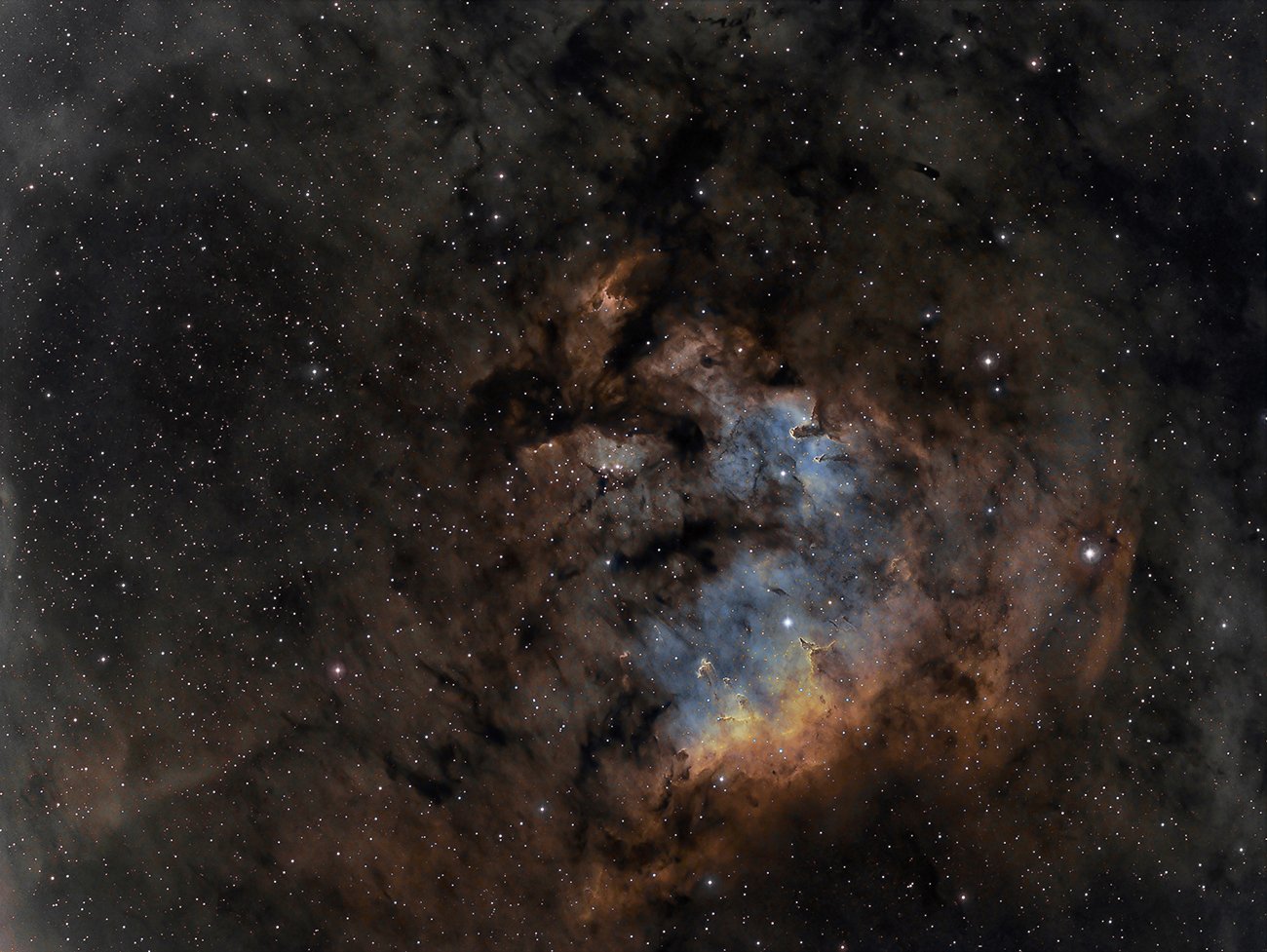 In the dusty sky toward the constellation Taurus and the Orion Arm of our Milky Way Galaxy, this broad mosaic follows dark and faint reflection nebulae along the region's fertile molecular cloud. The six degree wide field of view starts with long dark nebula LDN 1495 stretching from the lower left, and extends beyond the (upside down) bird-like visage of the Baby Eagle Nebula, LBN 777, at lower right. Small bluish reflection nebulae surround scattered fainter Taurus stars, sights often skipped over in favor of the constellation's better known, brighter celestial spectacles. Associated with the young, variable star RY Tau, the yellowish nebula VdB 27 is toward the upper left. Only 400 light-years or so distant, the Taurus molecular cloud is one of the closest regions of low-mass star formation. At that distance this dark vista would span over 40 light-years.