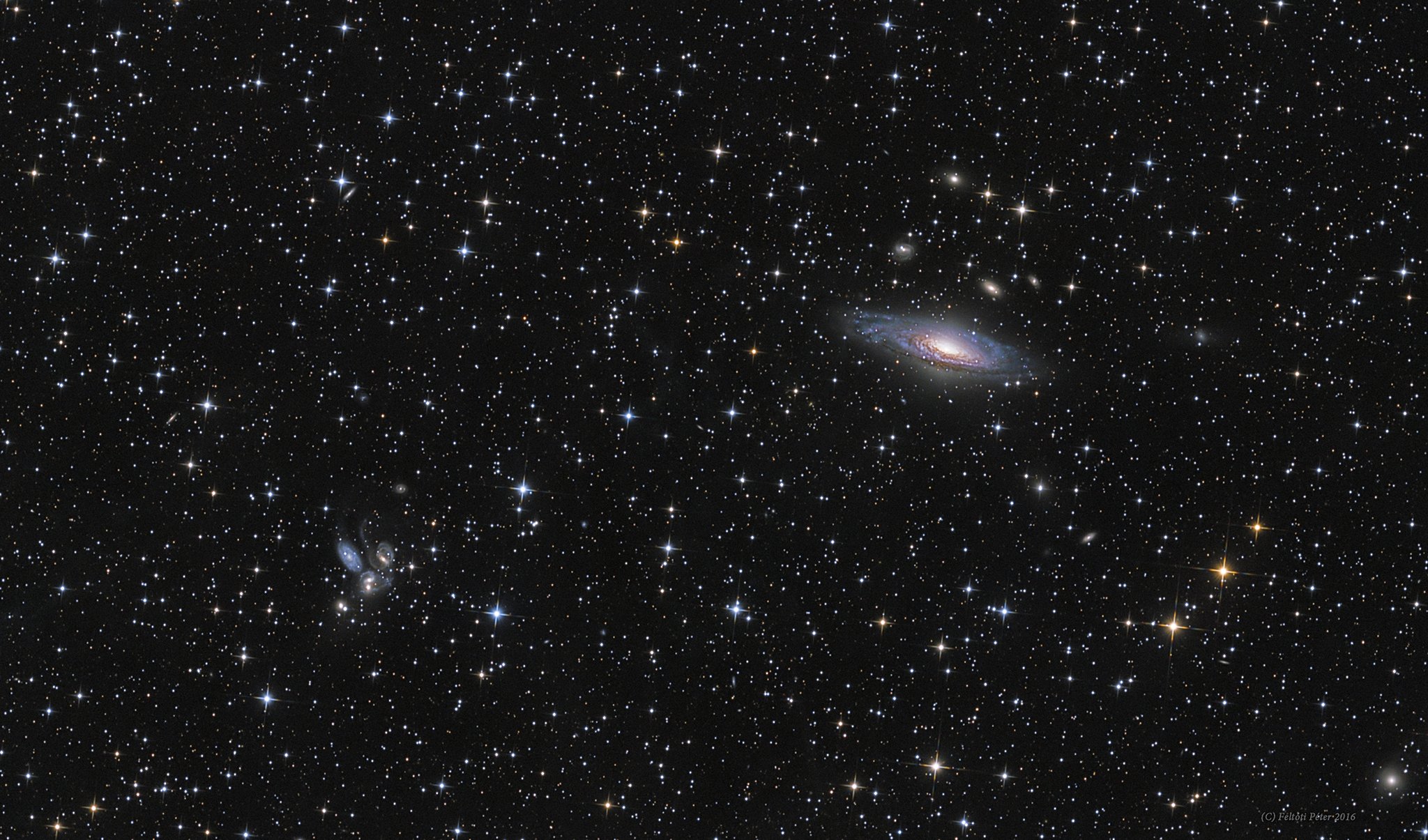 The constellation of Orion is much more than three stars in a row. It is a direction in space that is rich with impressive nebulas. To better appreciate this well-known swath of sky, an extremely long exposure was taken over many clear nights in 2013 and 2014. After 212 hours of camera time and an additional year of processing, the featured 1400-exposure collage spanning over 40 times the angular diameter of the Moon emerged. Of the many interesting details that have become visible, one that particularly draws the eye is Barnard's Loop, the bright red circular filament arcing down from the middle. The Rosette Nebula is not the giant red nebula near the top of the image -- that is a larger but lesser known nebula known as Lambda Orionis. The Rosette Nebula is visible, though: it is the red and white nebula on the upper left. The bright orange star just above the frame center is Betelgeuse, while the bright blue star on the lower right is Rigel. Other famous nebulas visible include the Witch Head Nebula, the Flame Nebula, the Fox Fur Nebula, and, if you know just where to look, the comparatively small Horsehead Nebula. About those famous three stars that cross the belt of Orion the Hunter -- in this busy frame they can be hard to locate, but a discerning eye will find them just below and to the right of the image center.