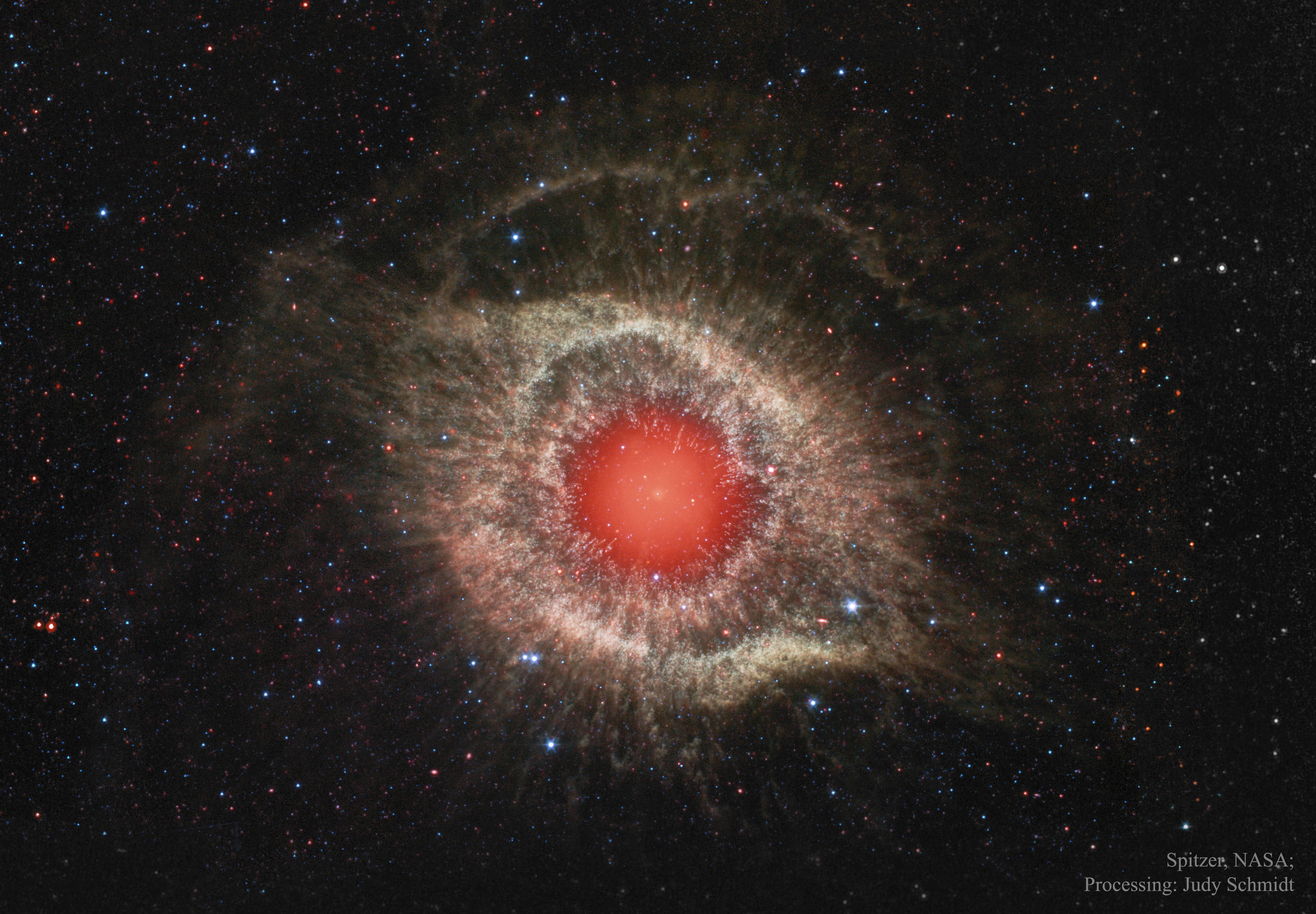 What's happening at the edge of the Sun? Although it may look like a monster is rampaging, what is pictured is actually only a monster prominence -- a sheath of thin gas held above the surface by the Sun's magnetic field. The solar event was captured just this past weekend with a small telescope, with the resulting image then inverted and false-colored. As indicated with illustrative lines, the prominence rises over 50,000 kilometers above the Sun's surface, making even our 12,700-diameter Earth seem small by comparison. Below the monster prominence is active region 12585, while light colored filaments can be seen hovering over a flowing solar carpet of fibrils. Filaments are actually prominences seen against the disk of the Sun, while similarly, fibrils are actually spicules seen against the disk. Energetic events like this are becoming less common as the Sun evolves toward a minimum in its 11-year activity cycle.