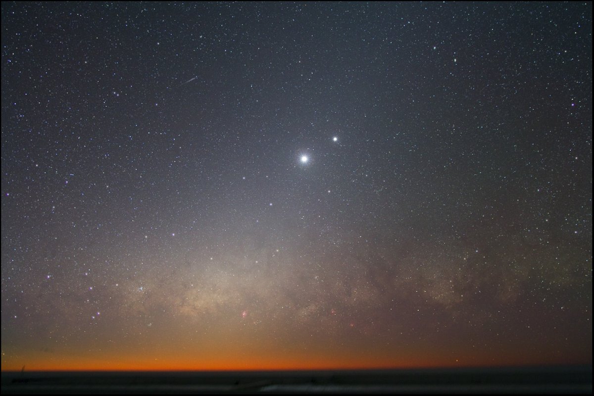 What bizarre alien planet is this? It's planet Earth of course, seen from the International Space Station through the shimmering glow of aurorae. About 400 kilometers (250 miles) above Earth, the orbiting station is itself within the upper realm of the auroral displays. Aurorae have the signature colors of excited molecules and atoms at the low densities found at extreme altitudes. Emission from atomic oxygen dominates this view. The eerie glow is green at lower altitudes, but a rarer reddish band extends above the space station's horizon. Also visible from the planet's surface, this auroral display began during a geomagnetic storm. The storm was triggered after a coronal mass ejection impacted Earth's magnetosphere in June of 2015.