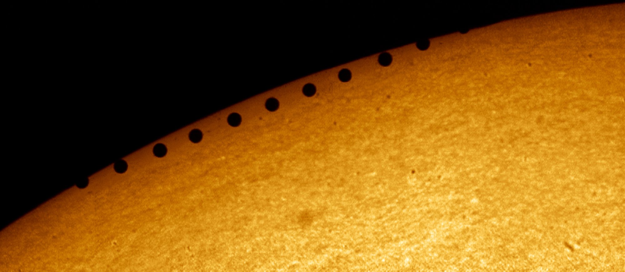The road tracking through this stunning 360 degree view crosses a remote mountain area of Jämtland, Sweden, planet Earth. A 3x8 mosaic of still images, the panorama was taken on May 3rd from a small drone 200 meters above the ground. The scene records the warm light of the Sun setting in the northwest and the planet's dark shadow rising in the southeast. A small sun pillar gives away the Sun's position just below the horizon while the pinkish anti-twilight arch or belt of Venus outlines Earth's shadow. In the middle of the remarkably clear sky, the First Quarter Moon is visible above the mountains, its half illuminated disk separating shadowrise and sunset. A range of exposures was used to cover the large difference in sky brightness. The tallest peak left of the sunset is Storsnasen, some 1400 meters above sea level.