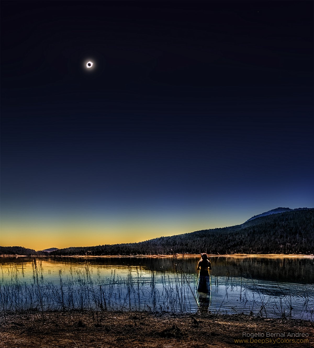 In clear Madras, Oregon skies, this colorful eclipse composite captured the elusive chromospheric or flash spectrum of the Sun. Only three exposures, made on August 21 with telephoto lens and diffraction grating, are aligned in the frame. Directly imaged at the far left, the Sun's diamond ring-like appearance at the beginning and end of totality brackets a silhouette of the lunar disk at maximum eclipse. Spread by the diffraction grating into the spectrum of colors toward the right, the Sun's photospheric spectrum traces the two continuous streaks. They correspond to the diamond ring glimpses of the Sun's normally overwhelming disk. But individual eclipse images also appear at each wavelength of light emitted by atoms along the thin, fleeting arcs of the solar chromosphere. The brightest images, or strongest chromospheric emission, are due to Hydrogen atoms. Red hydrogen alpha emission is at the far right with blue and purple hydrogen series emission to the left. In between, the brightest yellow emission is caused by atoms of Helium, an element only first discovered in the flash spectrum of the Sun.