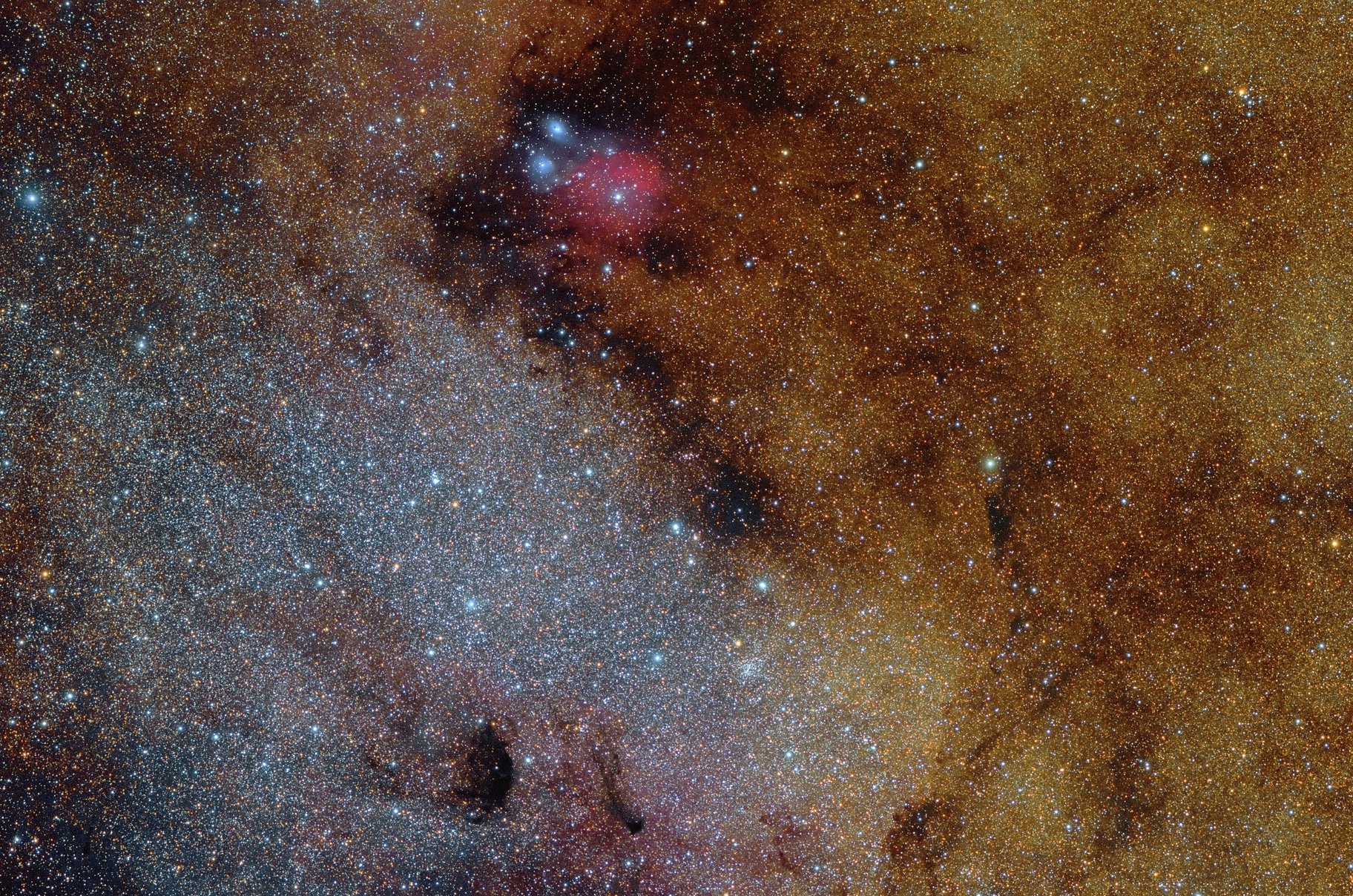 Bu yıldızlarla dolu manzaranın solunda, uzak güney göklerinde 40 dereceden daha geniş bir alanı kaplayan Güney kutup yıldızı Sigma Octantis (Octans takımyıldızından) yer alıyor. Yine de onu bulmak için epey dikkatli bakmanız gerekecek. Kuzey yıldızı Polaris'in güney yarımküredeki sönük karşılığı olan Sigma Octantis, Güney Gök Kutbu'ndan bir dereceden biraz fazla uzakta. Polaris Australis adıyla da bilinen Sigma Octantis, 5. kadirden daha sönük. Polaris'ten yaklaşık 25 kat daha soluk olduğu için çıplak gözle seçmesi de pek kolay değil. Hatta bir ülke bayrağında tasvir edilen en sönük yıldız bile olabilir. Bu etkileyici, derin ve geniş alan görüntüsü; soluk, tozlu galaktik sirrus bulutlarını da kapsıyor. Sağ tarafta ise Samanyolu gökadasının düzleminin güney uzanımları boyunca sıralanan yıldız kümeleri ve bulutsularla sınır çiziliyor. Sağ üst köşeye yakın sarımsı Gamma Crucis, Güneyhaçı'nın tepe yıldızı. Merkezin üstünde ve sağında kolayca fark edilen ise güneydeki Musca (Sinek) takımyıldızındaki uzun Dark Doodad bulutsusu.