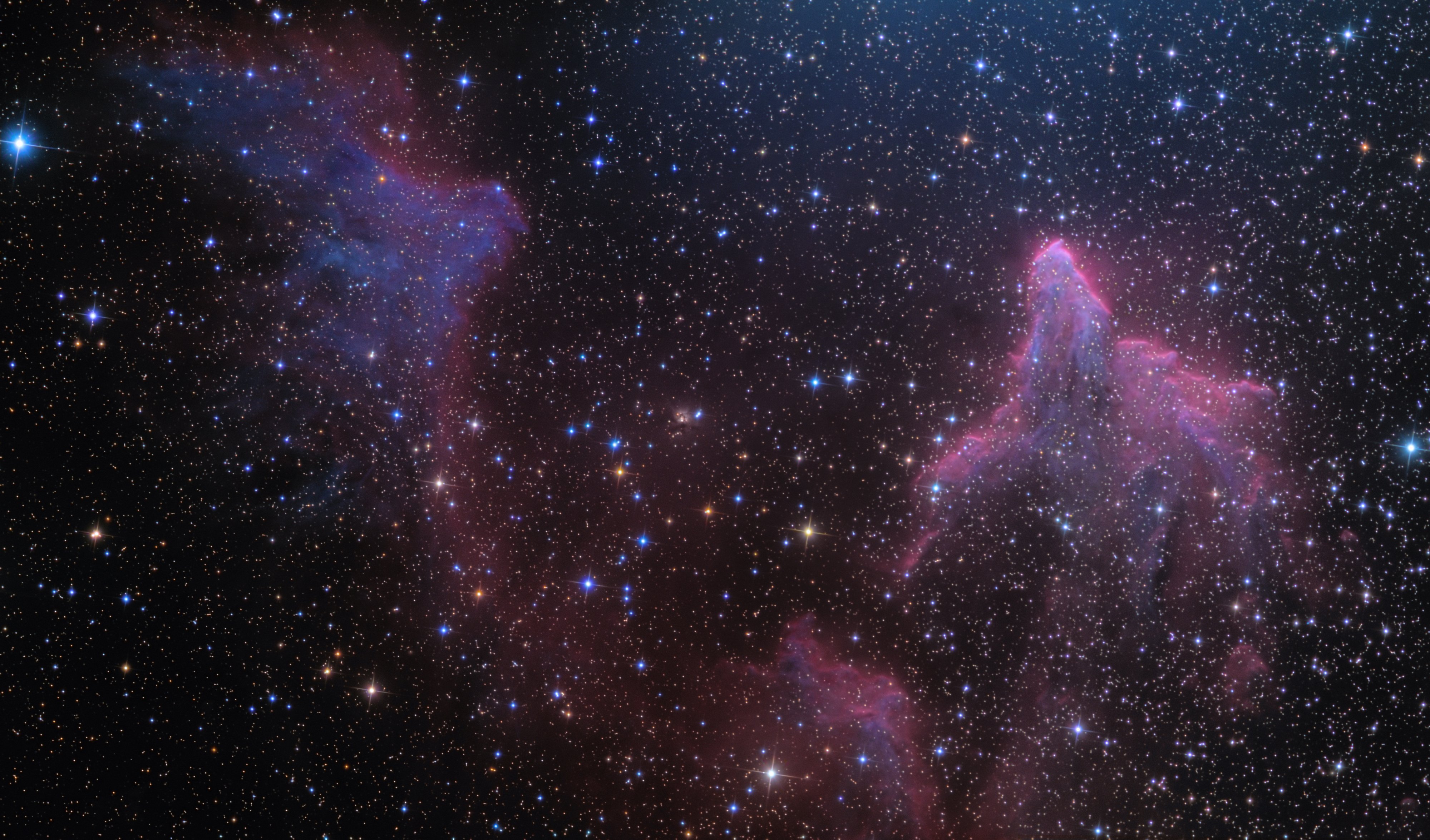 Light-years across, this suggestive shape known as the Seahorse Nebula appears in silhouette against a rich, luminous background of stars. Seen toward the royal northern constellation of Cepheus, the dusty, obscuring clouds are part of a Milky Way molecular cloud some 1,200 light-years distant. It is also listed as Barnard 150 (B150), one of 182 dark markings of the sky cataloged in the early 20th century by astronomer E. E. Barnard. Packs of low mass stars are forming within from collapsing cores only visible at long infrared wavelengths. Still, colorful stars in Cepheus add to the pretty, galactic skyscape.