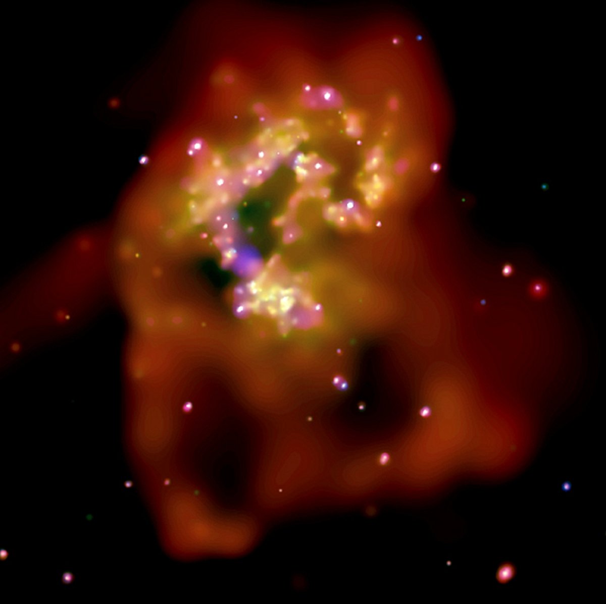 Galaksimizin kalbi ve ruhu Cassiopeia’da mı yer alıyor? Muhtemelen hayır, ancak Kalp ve Ruh olarak adlandırılan bulutsular burada bulunuyor. Görüntünün sağ alt kısmını kaplayan ve resmi adı IC 1805 olan Kalp Bulutsusu, klasik kalp sembolünü çağrıştıran bir şekle sahip. Resmi adı IC 1871 olan Ruh Bulutsusu ise sol üstte görülebilir. Enerjilenmiş hidrojenin kırmızı ışığı sayesinde her iki bulutsu da pırıl pırıl parlamaktadır. Ayrıca bu üç renkli kompozisyon, sarı renkli ışık yayan sülfür ve mavi gözüken oksijenden oluşmaktadır. Bulutsu merkezlerinin yakınında birkaç genç açık yıldız kümesi yer almaktadır. Toplamda yaklaşık 300 ışık yılı mesafedeki bu bulutsuların ışığının bize ulaşması yaklaşık 6000 sene sürmektedir. Kalp ve Ruh Bulutsularında bulunanlara benzer yıldızlar ve kümeler üzerine yapılan araştırmalar, büyük yıldızların nasıl oluştuğuna ve çevrelerini nasıl etkilediklerine odaklanmaktadır.