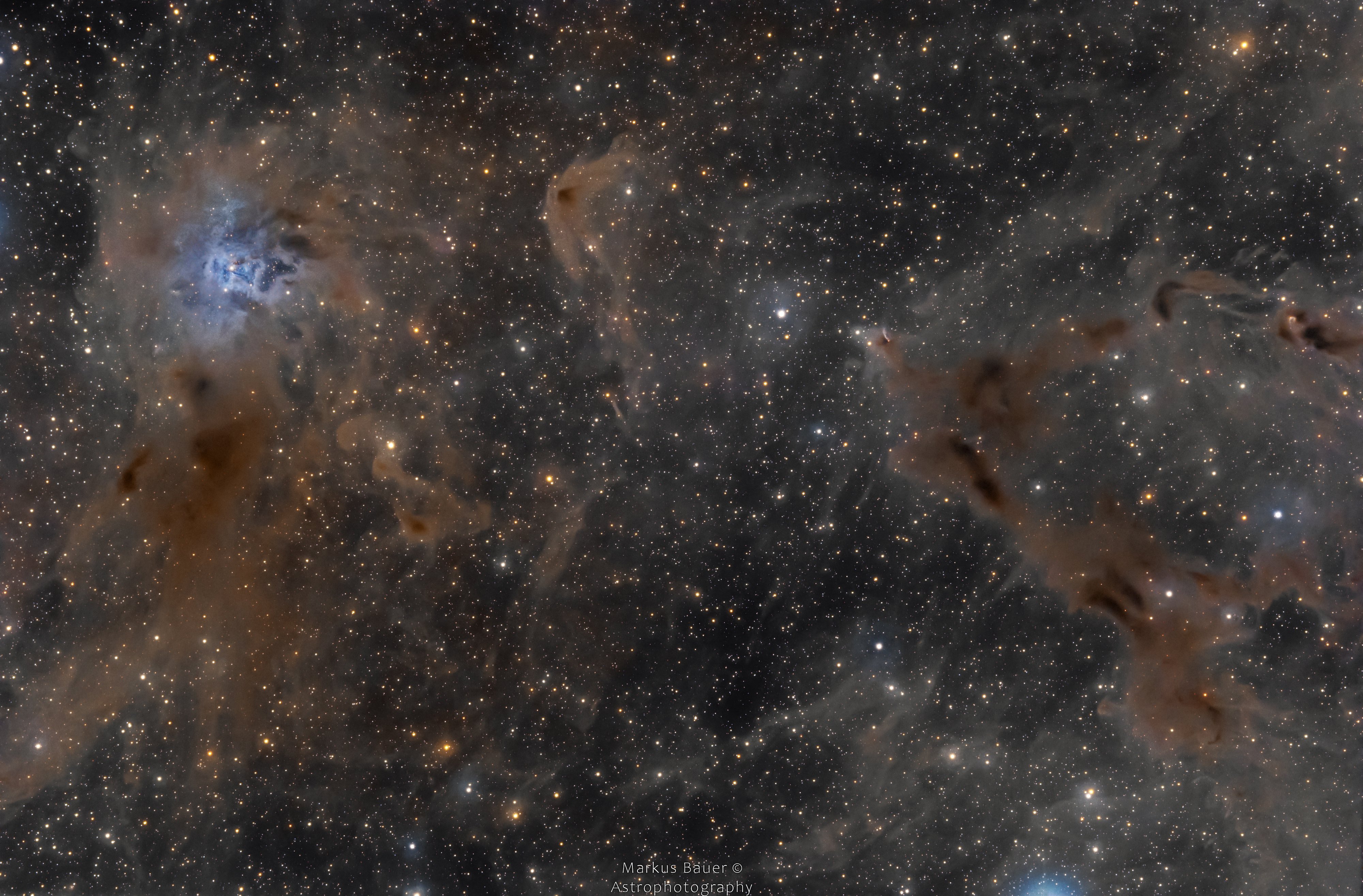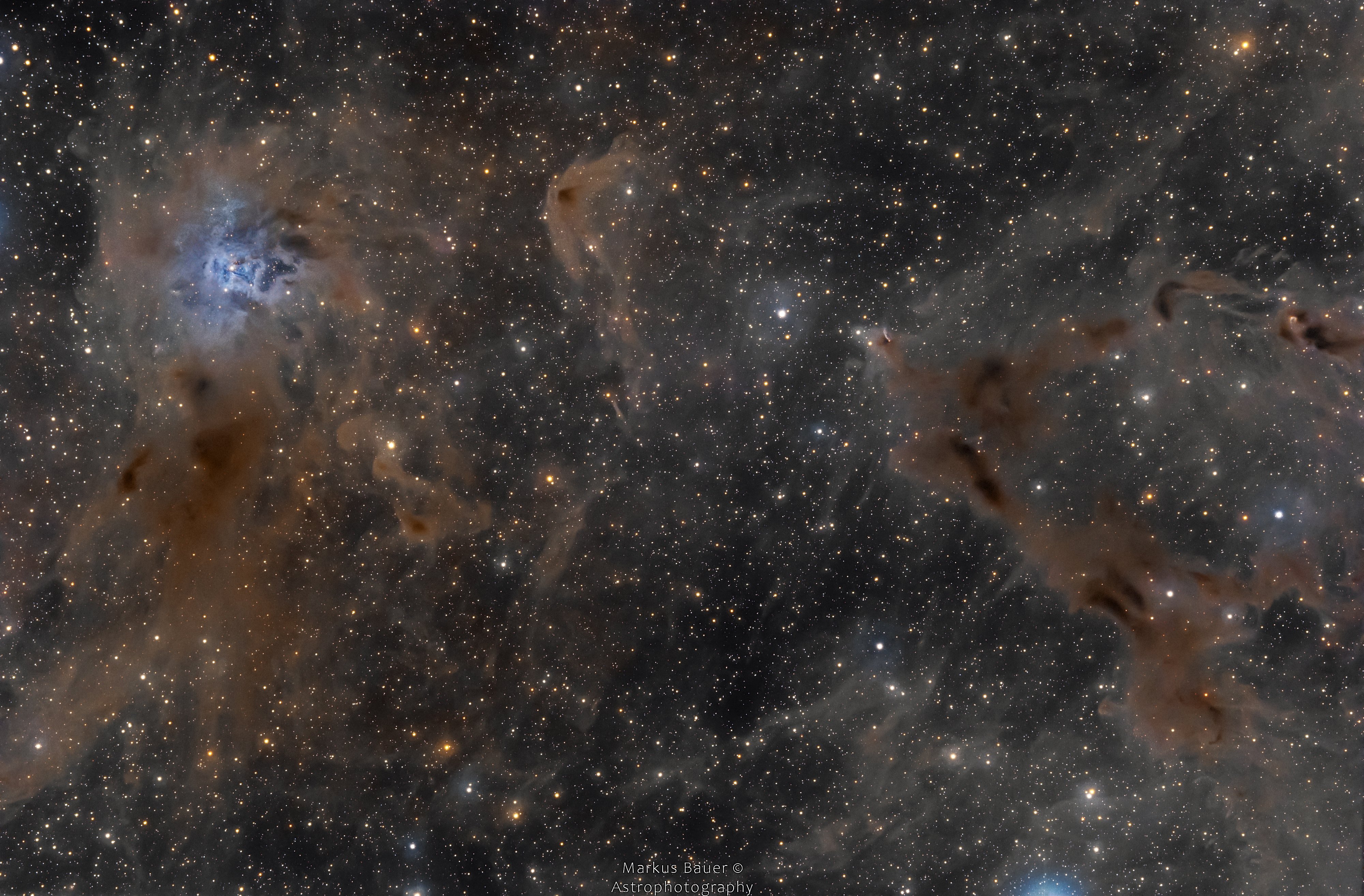 What energizes the Heart Nebula? First, the large emission nebula dubbed IC 1805 looks, in whole, like a human heart. The nebula glows brightly in red light emitted by its most prominent element: hydrogen. The red glow and the larger shape are all powered by a small group of stars near the nebula's center. In the center of the Heart Nebula are young stars from the open star cluster Melotte 15 that are eroding away several picturesque dust pillars with their energetic light and winds. The open cluster of stars contains a few bright stars nearly 50 times the mass of our Sun, many dim stars only a fraction of the mass of our Sun, and an absent microquasar that was expelled millions of years ago. The Heart Nebula is located about 7,500 light years away toward the constellation of Cassiopeia. Coincidentally, a small meteor was captured in the foreground during imaging and is visible above the dust pillars. At the top right is the companion Fishhead Nebula.