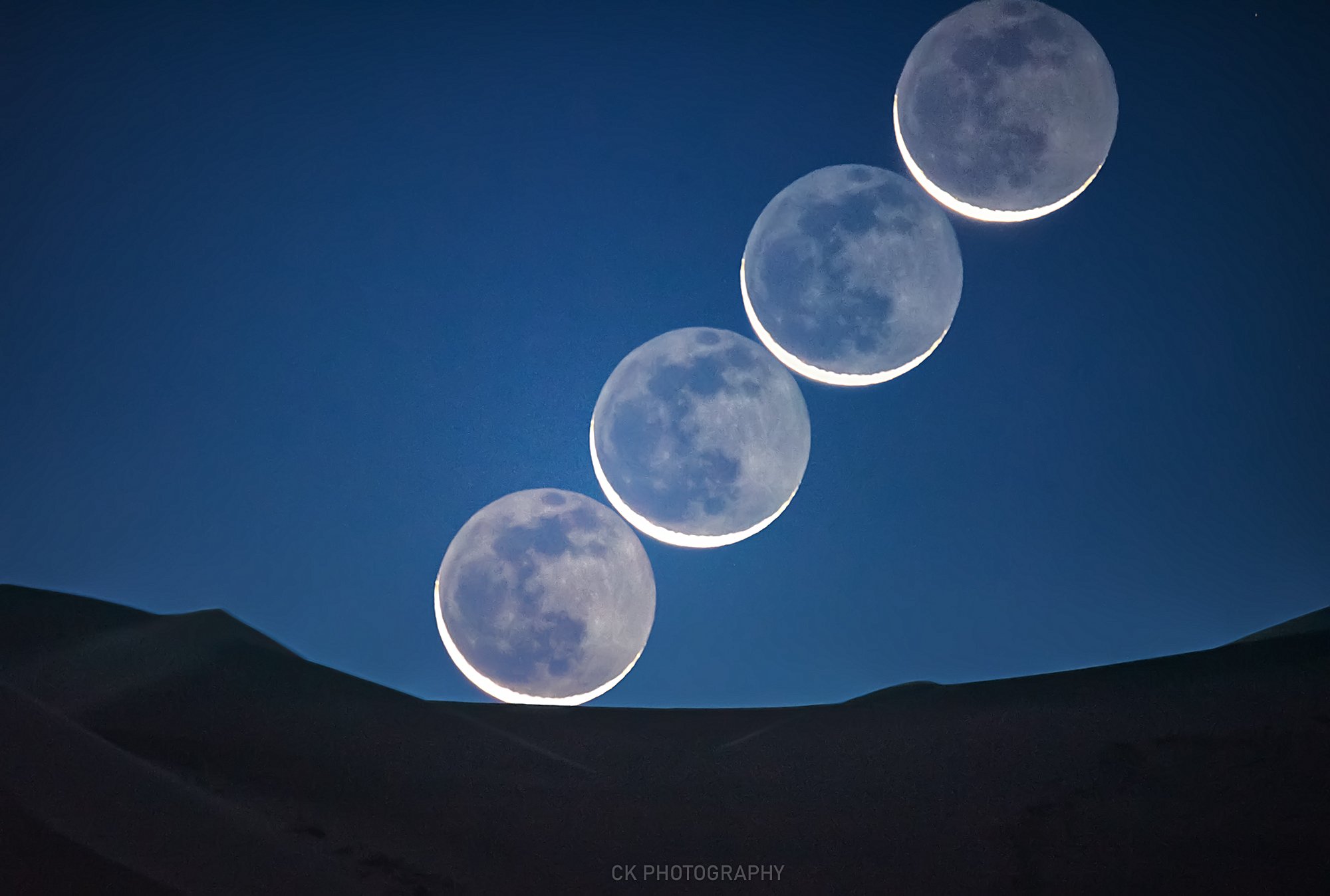 An old Moon rose this morning, its waning sunlit crescent shining just above the eastern horizon before sunrise. But earthshine, light reflected from a bright planet Earth, lit the shadowed portion of the lunar disk and revealed most of a familiar lunar near side to early morning risers. In fact, a description of earthshine in terms of sunlight reflected by Earth's oceans illuminating the Moon's dark surface was written over 500 years ago by Leonardo da Vinci. One lunation ago this old Moon also rose above the eastern horizon. Its sunlit crescent and da Vinci glow were captured in stacked exposures from the Badain Jilin Desert of Inner Mongolia, China on August 29, 2019. This year marks the 500th anniversary of Leondardo da Vinci's death.