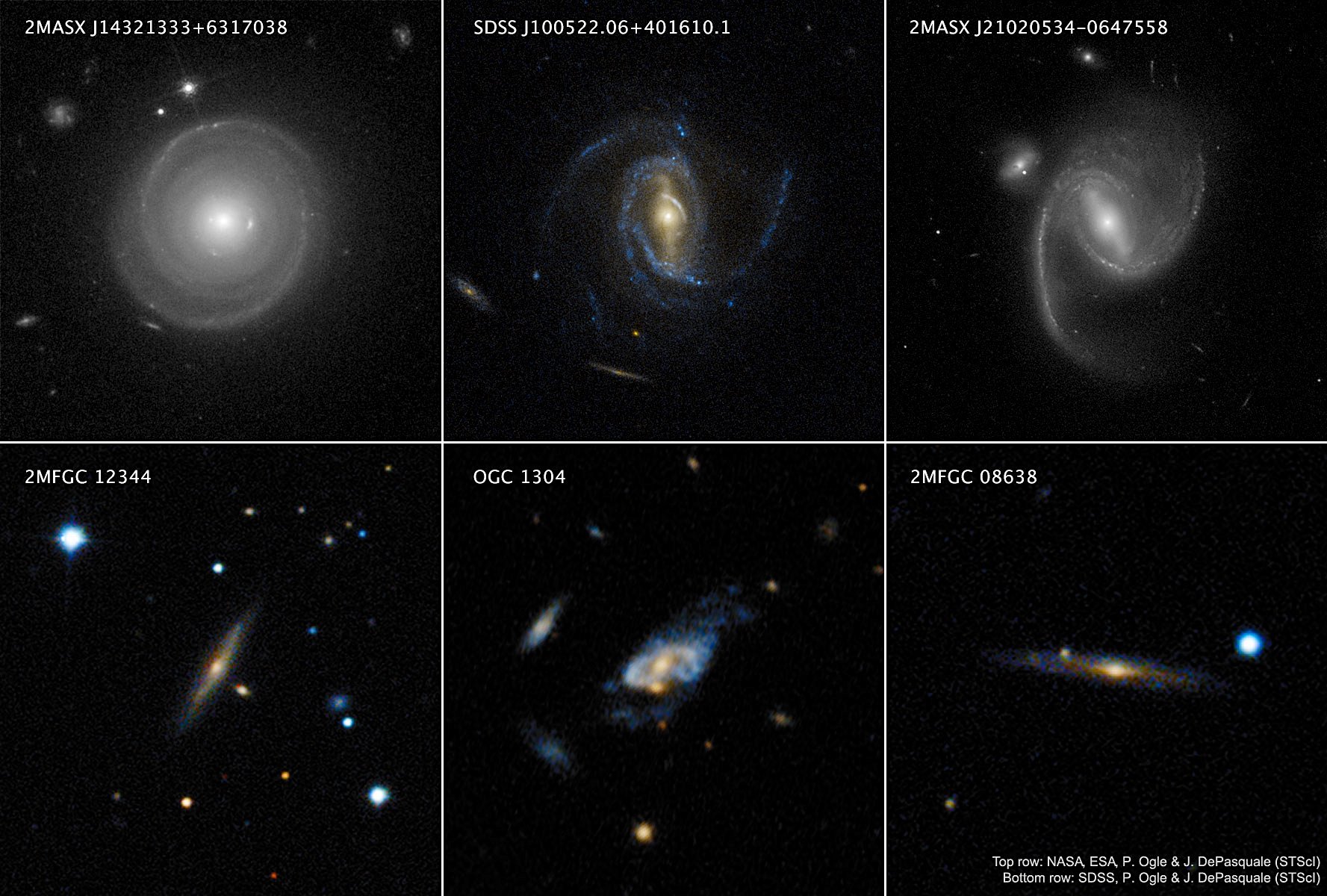 Görsel Kaynağı: Top row: NASA, ESA, Hubble, P. Ogle & J. DePasquale (STScI); Bottom row: SDSS, P. Ogle & J. DePasquale (STScI)