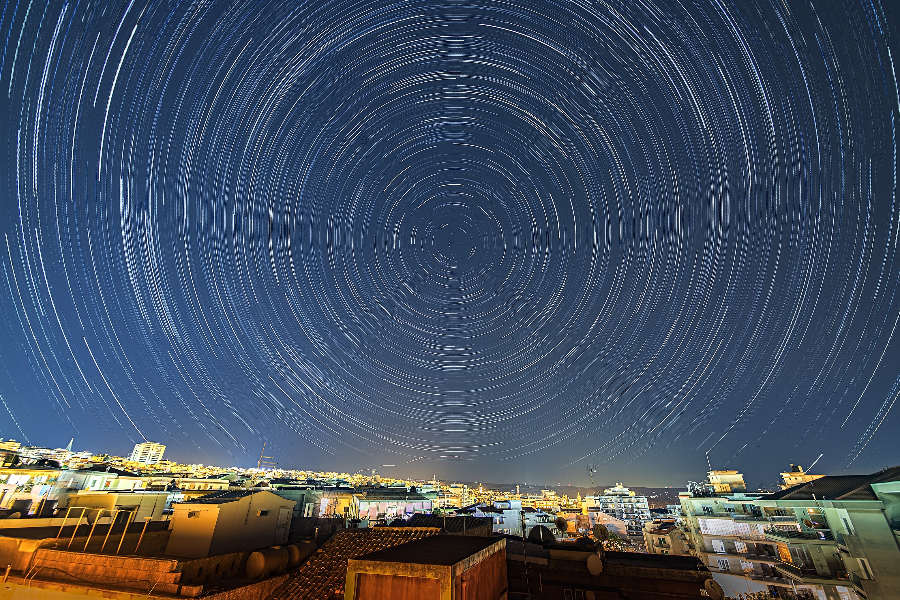 In trying times, stars still trail in the night. Taken on March 14, this night skyscape was made by combining 230 exposures each 15 seconds long to follow the stars' circular paths. The camera was fixed to a tripod on an isolated terrace near the center of Ragusa, Italy, on the island of Sicily. But the night sky was shared around the rotating planet. A friend to celestial navigators and astrophotographers alike Polaris, the north star, makes the short bright trail near the center of the concentric celestial arcs.