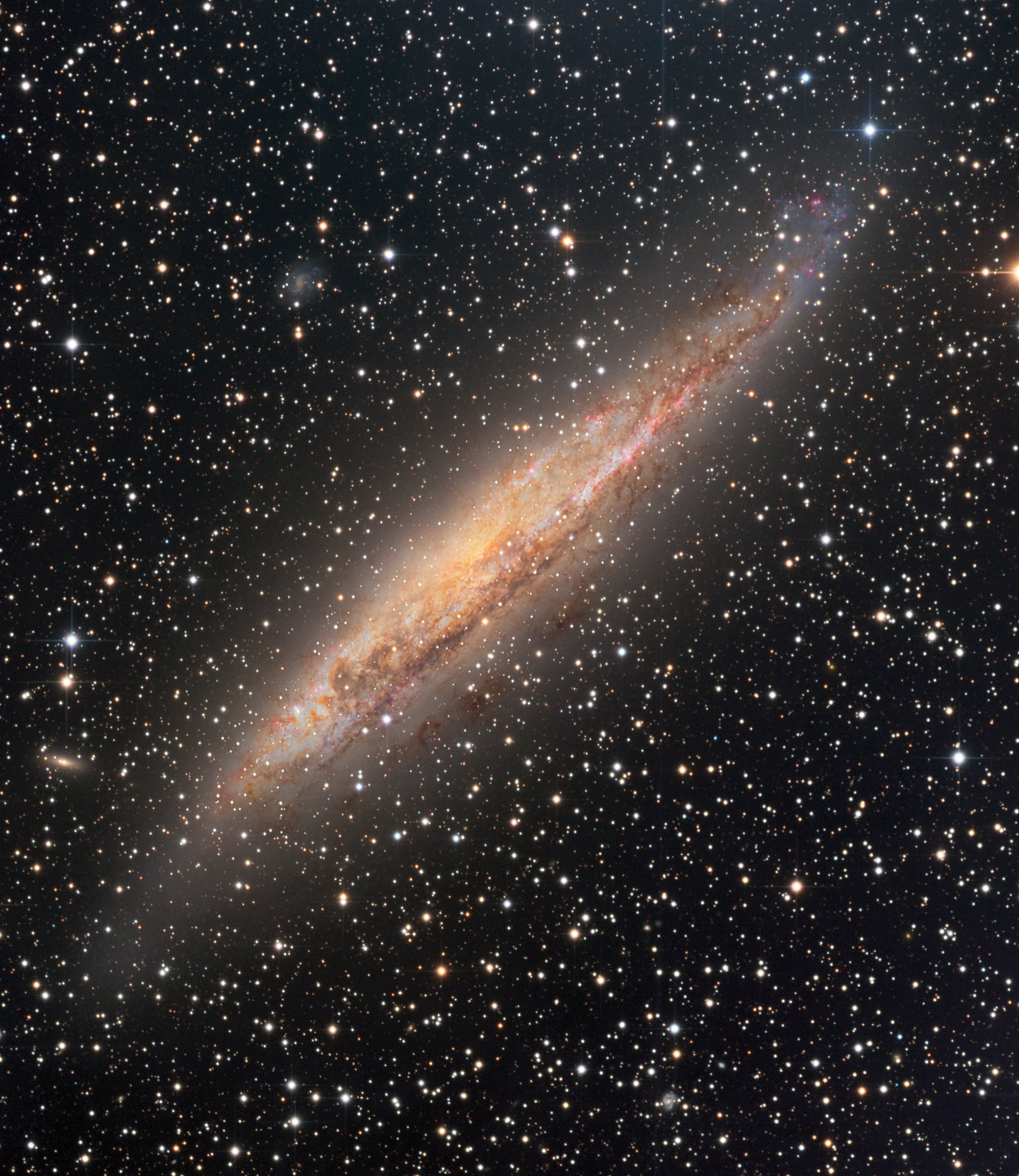 Bu renkli ve kaotik görünümlü, parlak gaz ve toz bulutu, galaksimiz Samanyolu içerisinde yer alan en büyük yıldız oluşum bölgelerinden biri olan Büyük Karina Bulutsusu. Bu bölge, bulutsunun en enerjik ve esrarengiz yıldızı olan Eta Carinae’nin biraz güneyi ve doğusunda yer alan, yaklaşık 80 ışık yıllık genişliğe sahip bir alan. Sokağa çıkma yasakları sırasında rahatlayan gökyüzünün de katkısıyla, bu görüntüyü oluşturmak için dar bant kareler kullanılmış. Bu fotoğraf için bulutsunun karakteristik salınımları olan iyonize sülfür, hidrojen ve oksijen atomları gözlenerek bunlar kırmızı, yeşil ve mavi renklere atanmış. Bu ayrıca Hubble Uzay teleskobu görüntülerini de işlerken kullanılan popüler bir teknik.