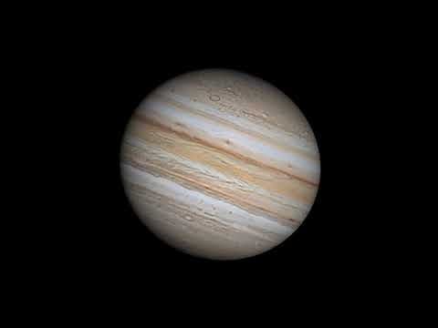 Güneş Sistemi'nin en büyük gezegeninin zarif dönüşünü izleyin. Jüpiter'in esrarengiz atmosferindeki birçok ilginç ayrıntı, koyu kuşaklar ve açık kuşaklar da dahil, adım adım takip edilebilir. Dikkatle bakınca farklı bulut katmanlarının birbirine çok yakın ama farklı hızlarla döndüğü görülür. Ünlü Büyük Kırmızı Leke ilk anda görünmez; ancak kısa süre sonra dönerek kadraja girer. Zaman zaman daha küçük fırtına sistemleri de belirir. Jüpiter ne kadar büyük olsa da kendi ekseni etrafındaki dönüşünü yalnızca 10 saatte tamamlar. Buna karşılık küçük Dünya'mızın bir tam dönüşü 24 saat sürer. Bu yüksek çözünürlüklü hızlandırılmış video, bu ayın başlarında beş gece boyunca Fransa'nın Paris kentinde bir apartman balkonuna kurulmuş orta boy bir teleskopla kaydedildi. Hidrojen ve helyum gazları renksizdir ve Jüpiter'in geniş atmosferinin büyük bölümünü bu elementler oluşturur. Bu yüzden Jüpiter'in bulutlarında gördüğümüz renkleri hangi iz elementlerin ürettiği hâlâ araştırma konusudur. Keşif + Topluma Erişim: APOD için lisansüstü öğrenci araştırma pozisyonu açık