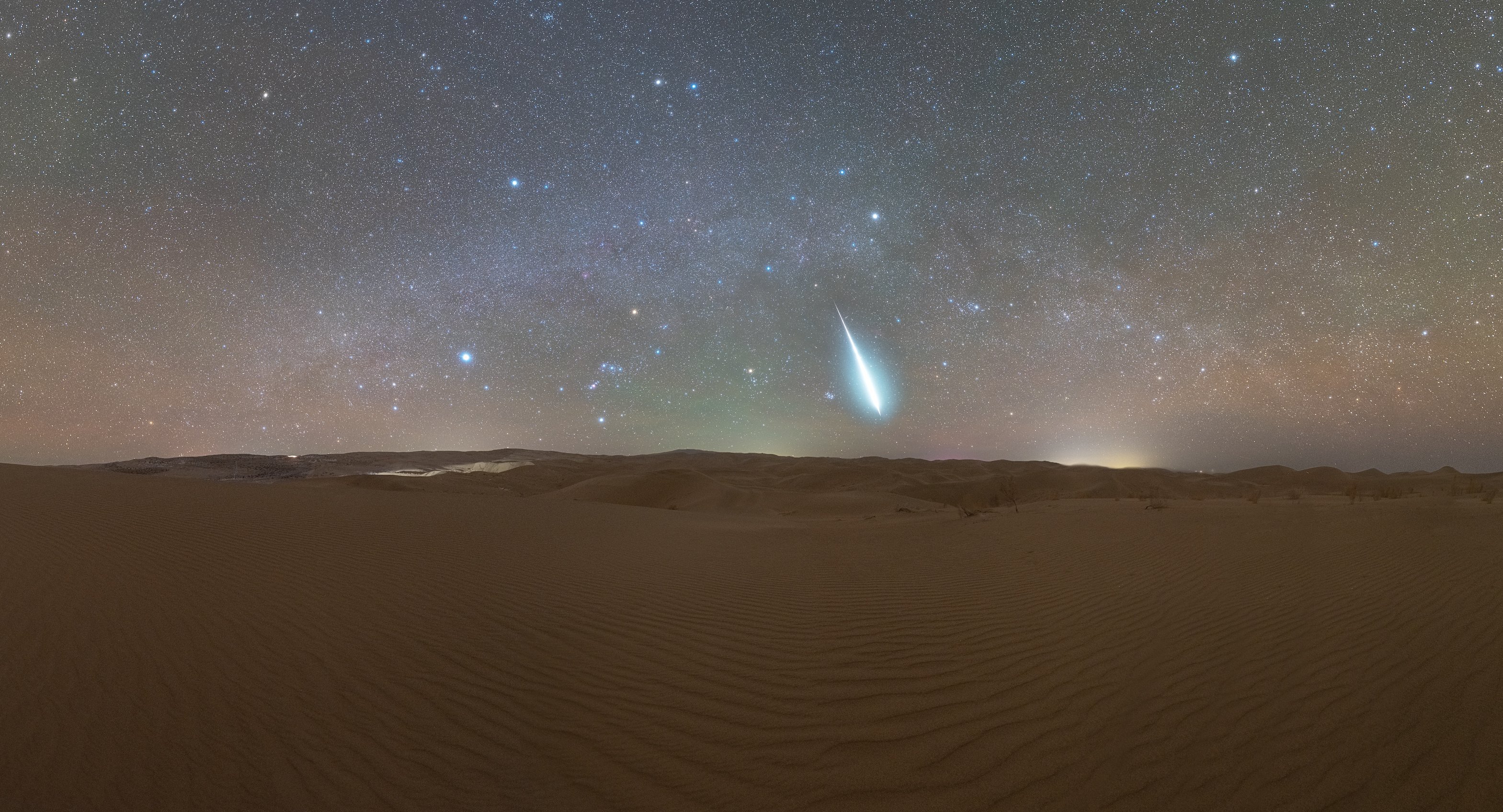 13/14 Aralık’ta Uruguay’ın güneyinden, Dünya‘dan çekilen bu görselde, ateş böcekleri mehtaplı bir kırsalda parıldıyor. O gece, her yıl gerçekleşen Geminid meteor yağmuru sırasında parçalı bulutlu olan gökyüzüne meteorlar düştü. Güneye bakacak biçimde hizalanan kamerayla, 1.5 saat boyunca kaydedilen kareler bu bileşik görseli oluşturmak için hizalandı. Yön, yağmurun kuzeye doğru olan saçılma noktasının tersinde olduğu için, Geminid meteorları güney ufkunun altındaki anti-saçılma noktasında birleşiyormuş gibi görünüyor. Saçılma ve anti-saçılma noktaları sadece perspektif etkisinden kaynaklanmaktadır. Dünya, gizemli 3200 Phaethon asteroidinin tozlu kuyruğunu süpürürken, Geminid meteor yağmurunu oluşturan toz tanecikleri gerçekte paralel izler boyunca hareket ediyor. Dünya‘nın atmosferine giren bu tozlar, saniyede yaklaşık 22 kilometre hızla hareket ediyor.