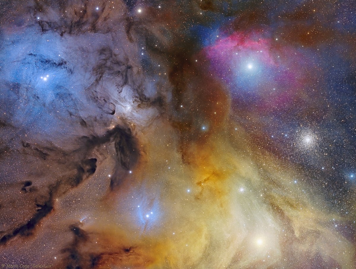 By starlight this eerie visage shines in the dark, a crooked profile evoking its popular name, the Witch Head Nebula. In fact, this entrancing telescopic portrait gives the impression that the witch has fixed her gaze on Orion's bright supergiant star Rigel. More formally known as IC 2118, the Witch Head Nebula spans about 50 light-years and is composed of interstellar dust grains reflecting Rigel's starlight. The blue color of the Witch Head Nebula and of the dust surrounding Rigel is caused not only by Rigel's intense blue starlight but because the dust grains scatter blue light more efficiently than red. The same physical process causes Earth's daytime sky to appear blue, although the scatterers in Earth's atmosphere are molecules of nitrogen and oxygen. Rigel, the Witch Head Nebula, and gas and dust that surrounds them lie about 800 light-years away.