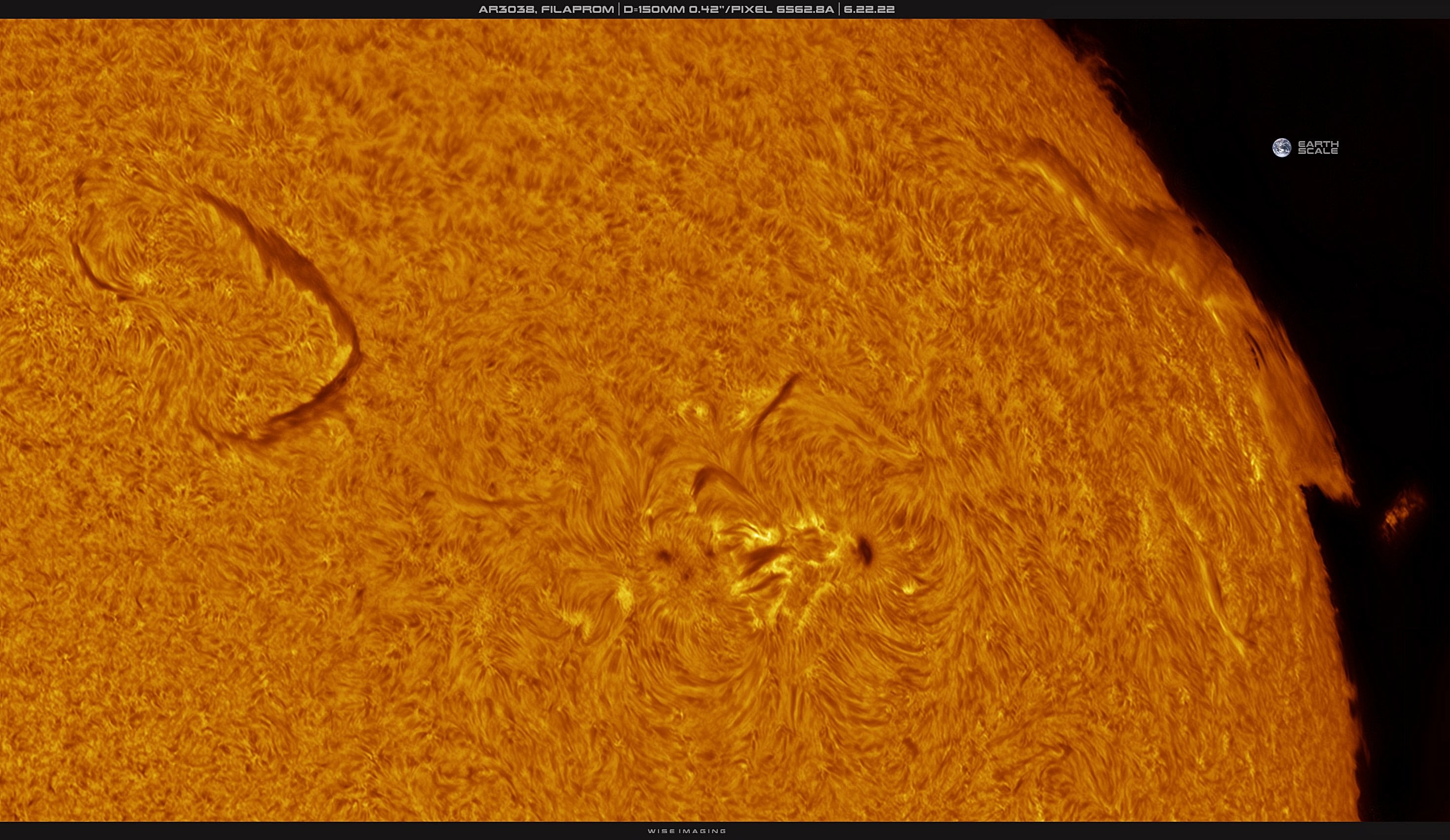 NGC 6744 isimli bu büyük ve göz alıcı sarmal galaksi, yaklaşık 175.000 ışık yılına denk genişliğiyle Samanyolu'ndan daha büyük bir alana yayılmaktadır. NGC 6744, güneydeki Tavus Kuşu (Lat: "Pavo") takımyıldızından yaklaşık 30 milyon ışık yılı uzaklıkta yer alır ve küçük bir teleskop ile bakıldığında yalnızca soluk, geniş bir nesne olarak görünür. Dolunayın açısal büyüklüğüne yakın bir alanı çerçeveleyen bu olağanüstü derin ve ayrıntılı galaksi portresini detaylı incelediğimizde, yakınlardaki evren adasına ait diskin gözlem hattımıza doğru eğilmiş olduğunu görüyoruz. Bu görüntüde dev galaksinin uzun sarımsı çekirdeği, yaşlı ve soğuk yıldızların ışığı tarafından aydınlatılıyor. Çekirdeğin dışında bulunan büyük sarmal kollarsa genç mavi yıldız kümeleriyle ve pembemsi yıldız oluşum bölgeleriyle doludur. Ayrıca galaksinin bu uzun kollarından birinin, sağ altta bulunan küçük uydu galaksi NGC 6744A'nın yanından geçtiğini görüyoruz. NGC 6744'ün bu galaktik yoldaşı, Samanyolu'nun uydu galaksisi olan Büyük Macellan Bulutu'nu anımsatıyor.