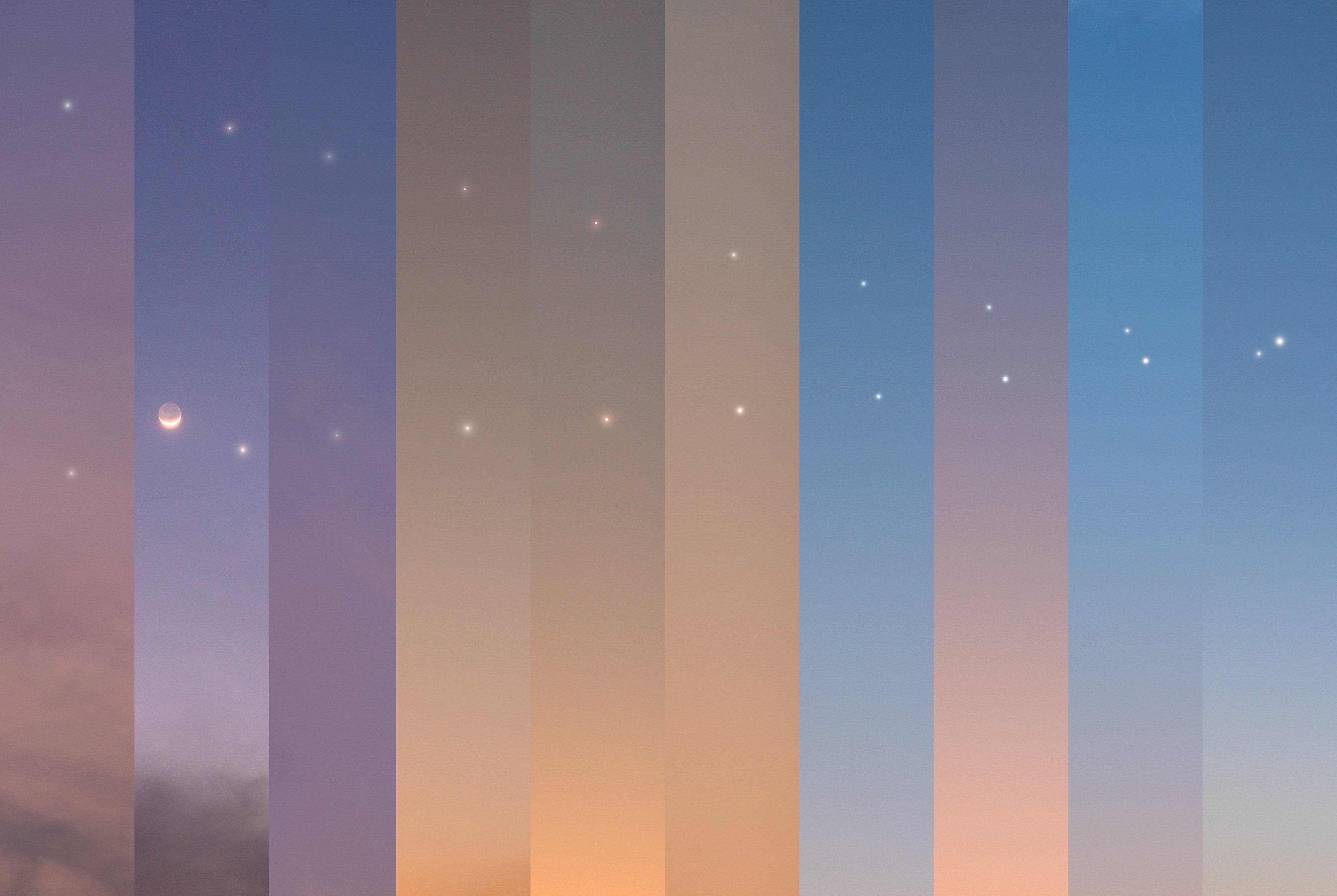 What are those two bright spots? Planets. A few days ago, the two brightest planets in the night sky passed within a single degree of each other in what is termed a conjunction. Visible just after sunset in much of the world, the two bright spots were Jupiter (left) and Venus (right). The featured image was taken near closest approach from Cirica, Sicily, Italy. The week before, Venus was rising higher in the sunset sky to meet the dropping Jupiter. Now they have switched places. Of course, Venus remains much closer to both the Sun and the Earth than Jupiter -- the apparent closeness between the planets in the sky of Earth was only angular. You can still see the popular pair for an hour or so after sunset this month although they continue to separate, and Jupiter continues to set earlier each night.