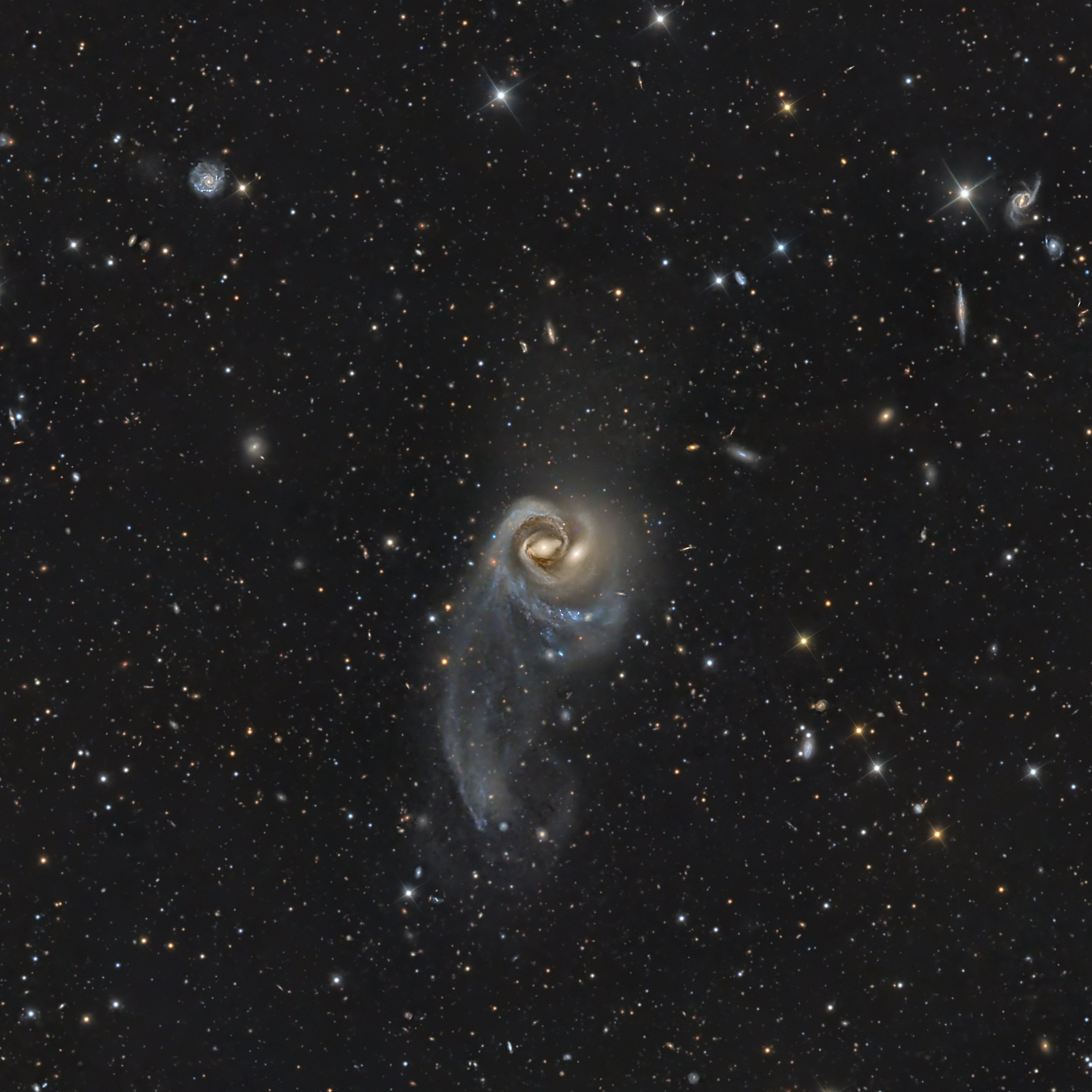 Geniş emisyon bulutsuları IC 1396 ve Sh2-129, kuzey takımyıldızı olan Kral Cepheus'a doğru yaklaşık 12 derecelik bu geniş görüş alanında parıldayan yıldızlararası gaz ve kara toz bulutlarını karıştırıyor. Merkezi yıldızı olan IC 1396'dan (solda) güç alan bu yıldız, yüzlerce ışık yılı genişliğinde ve yaklaşık 3.000 ışık yılı uzaklıkta konumlanıyor. Bulutsunun merak uyandıran koyu şekilleri arasında (aşağıda ve merkezin sağında) popüler olarak Fil Hortumu olarak bilinen, dolambaçlı bir kara bulut yer alır. Onlarca ışık yılı uzunluğuna sahip, yıldız oluşumu için ham maddeyi bulunduruyor ve içinde protostarları da bulundurduğu biliniyor. Dünya gezegeninden benzer bir uzaklıkta yer alan Sh2-129 emisyonunun sağdaki parlak düğümleri ve geriye doğru süpürülmüş sırtları, popüler adı olan Uçan Yarasa Bulutsusu'nu akla getiriyor. Uçan Yarasa içinde, bu kraliyet kozmik hayvanat bahçesine en son tanınan ekleme, Dev Kalamar Bulutsusu Ou4'ten gelen soluk mavi tonlarındaki emisyondur. Görselin sağ alt kenarına yakın bir yerde konumlanan ve Barnard 150 olarak isimlendirilen gökyüzündeki düşündürücü karanlık işaret, aynı zamanda karanlık Denizatı Bulutsusu olarak da bilinir.